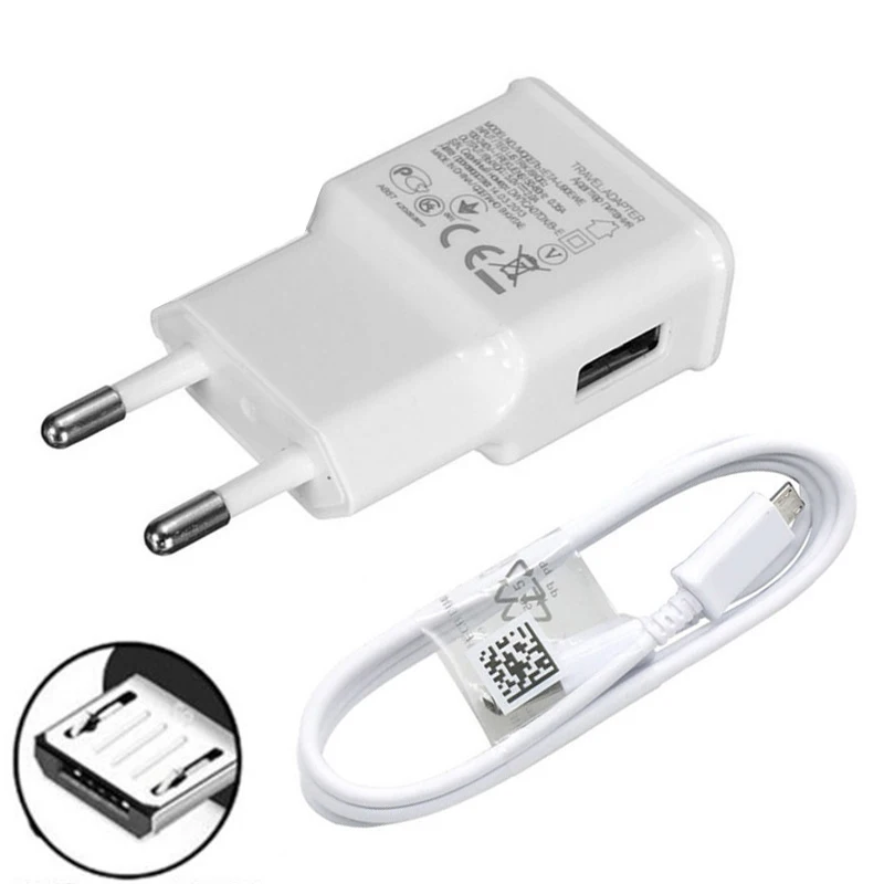Сетевое зарядное устройство для Samsung Galaxy S7 S6 edge, USB, европейская вилка, 5 В, 2 А, адаптер Micro USB, кабель передачи данных для Samsung M10, A10, J3, J5, J7, J4, J6 Plus