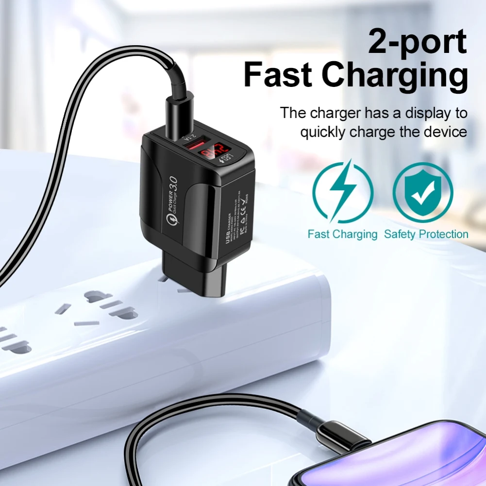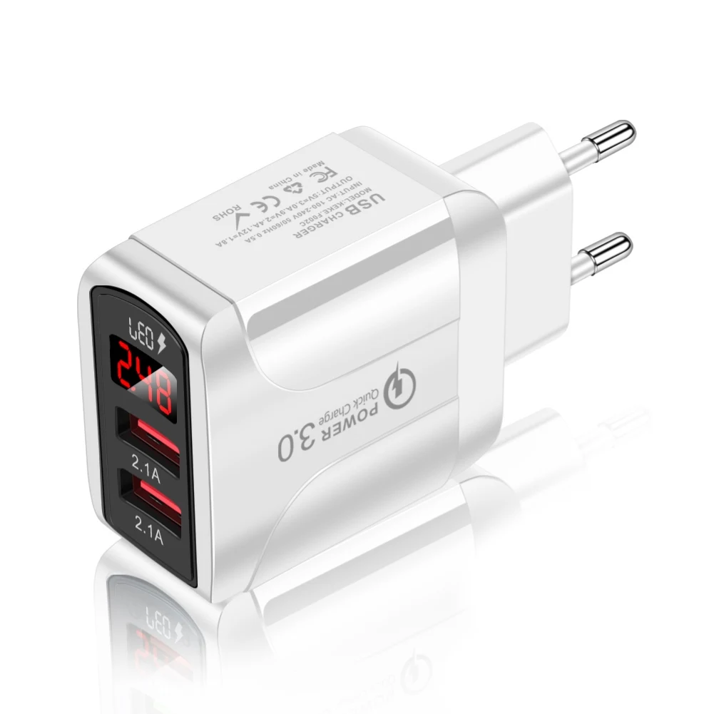 2.1A цифровой дисплей EU/US/UK вилка Быстрая зарядка для телефона адаптер быстрой зарядки