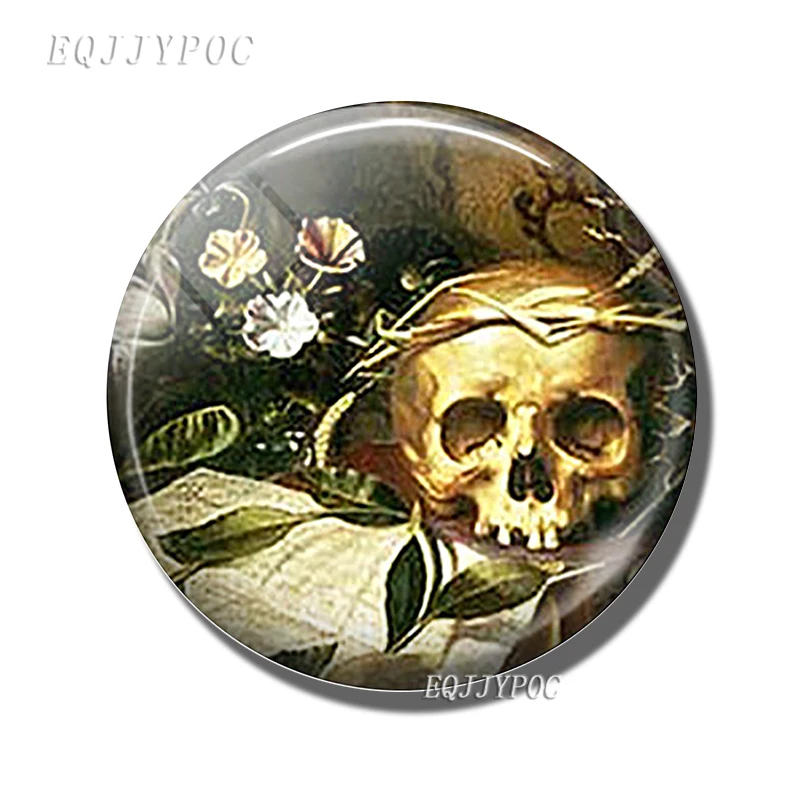 Стеклянная выпуклая круглая наклейка на холодильник в виде черепа