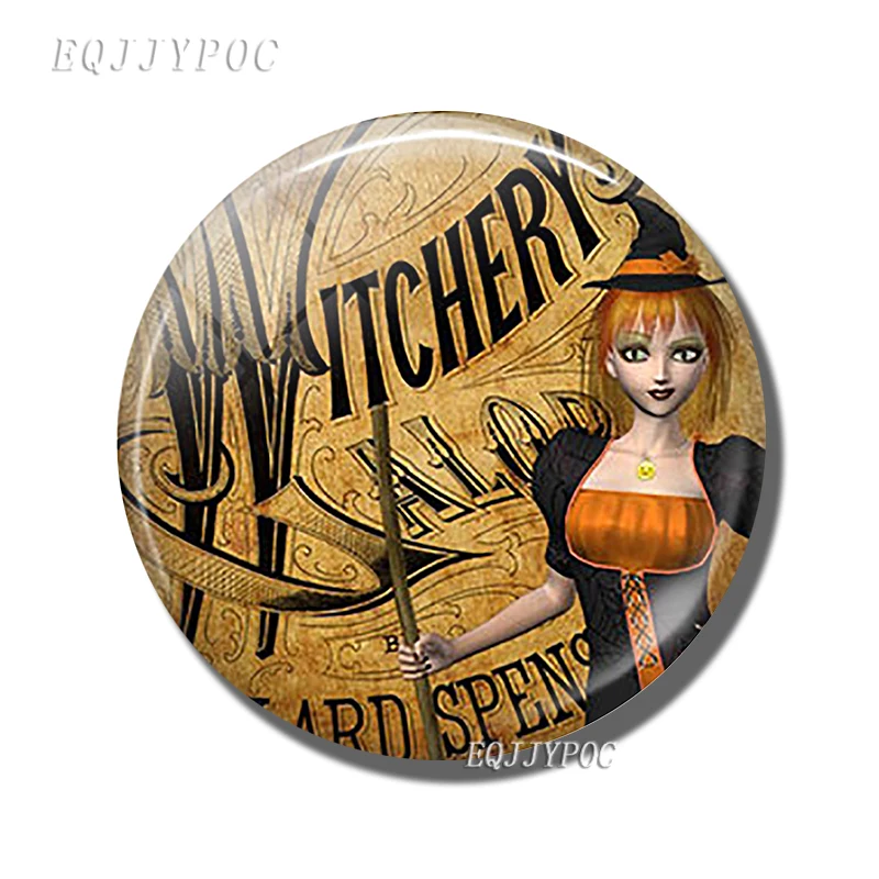 30 мм магнит на холодильник Happy Haunting ведьма Тыква стеклянный ...