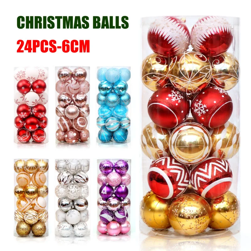 24 шт., разноцветные Украшения для новогодней елки, 6 см2,4 дюйма, блестящие елочные шары для дома, украшение для бара и вечеринки