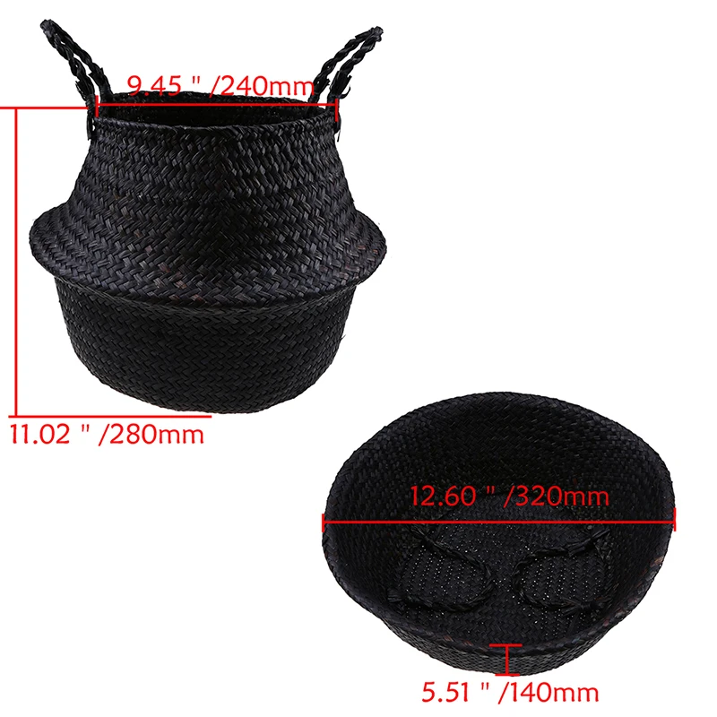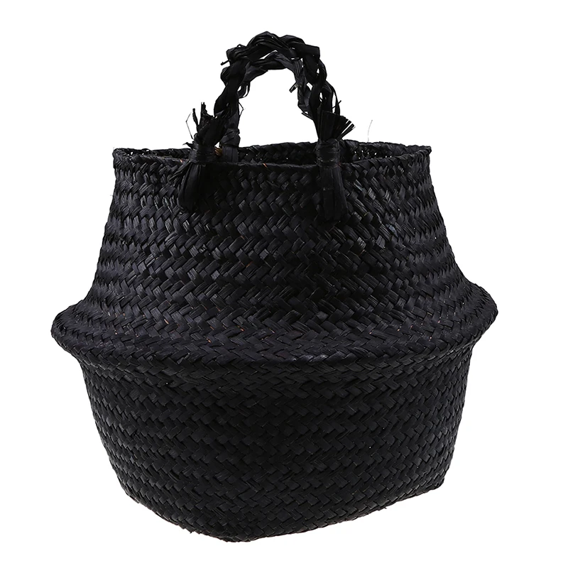 Черная корзина для цветов из морских водорослей, домашние складные корзины для хранения, Плетеный цветочный горшок ручной работы, Плетеный органайзер для белья
