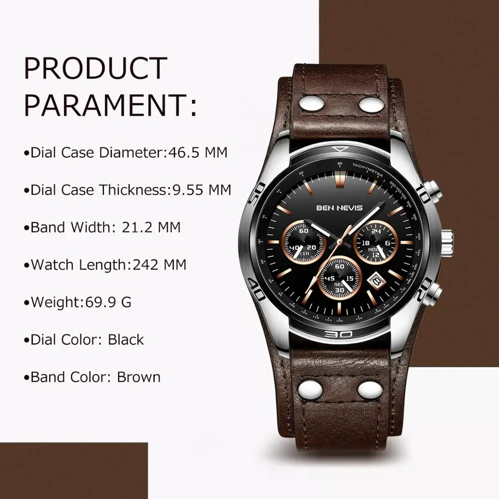 Ben Nevis, мужские часы, роскошные брендовые часы, кварцевые часы, ...