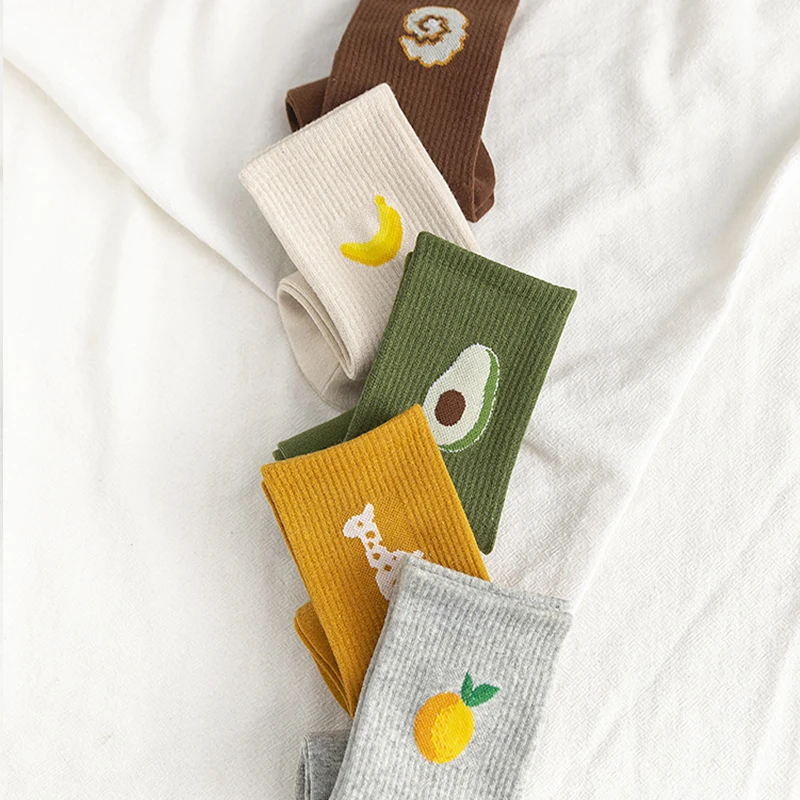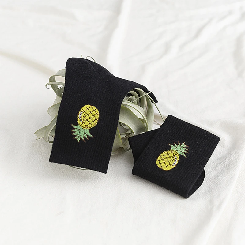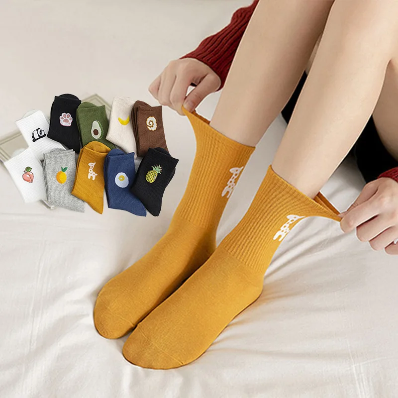 1 пара модных Хлопковых Носков повседневные удобные мягкие женские длинные носки милые однотонные носки для девочек с вышитыми фруктами