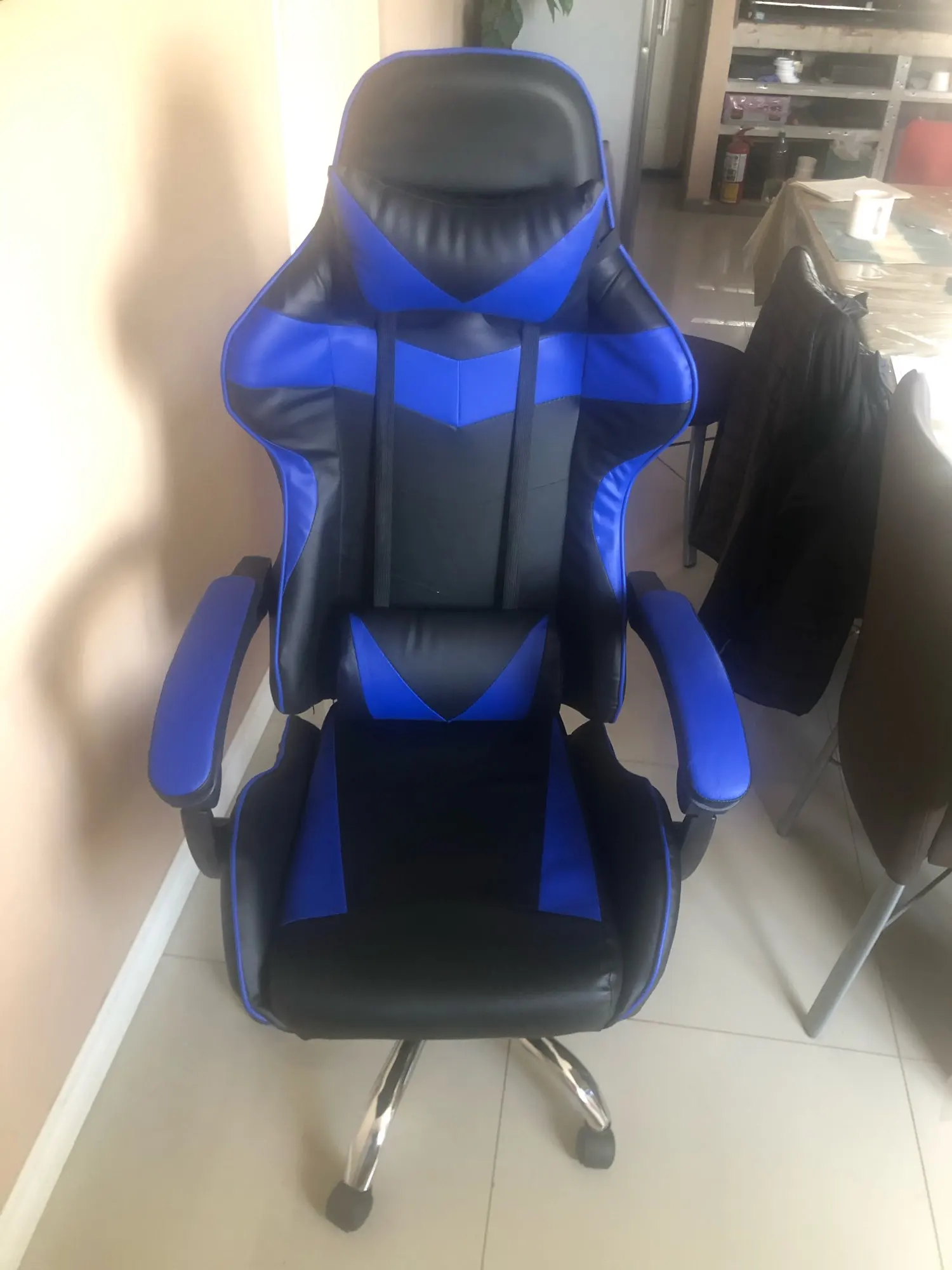 Классический дизайн-Эргономичный игровой стул с классическим внешним видом и подходящим размером, широко используется для интенсивных игровых занятий, домашнего отдыха или работы в течение длительного времени. Посылка включает в себя:Игровой стул-1 шт.1 х Монтажный инструмент(Вам нужно собрать его самостоятельно!) Спецификация:Название продукта: игровой офисный стулМодель: C57742Цвет: черный и синий, черный и золотой, черный и белыйМатериал: ПВХ (поливинилхлорид) кожа + эластичная ткань + стальМакс. Подшипник нагрузки: 150 кгВесь размер: 64x120 см/25,19 ''x 47,24''Размер сидения: 37x46 см/14,56 ''x 18,11''(Пожалуйста, примите во внимание погрешность в 1-3 см, вызванную ручными измерениями!)Подходящая высота: 155-190 см Характеристика:-90 ° ~ 150 °, может лежать как кровать.-Выдвижная подставка для ног, сделает вас более свободными во время перерыва.-Высококачественная Кожаная подушка, удобная сидя, устойчивая к царапинам.-Универсальное колесо с 5 когтями, большой подшипник и много звука.-Вращение на 360 °.-Регулируемая по высоте, подходит для разных людей.