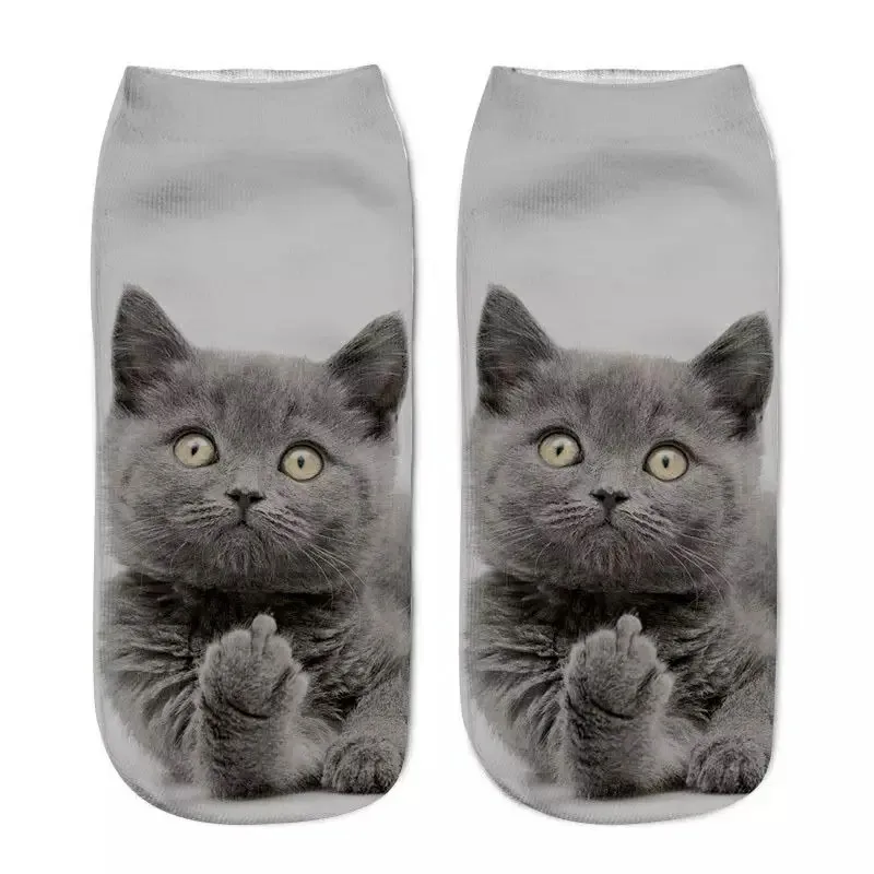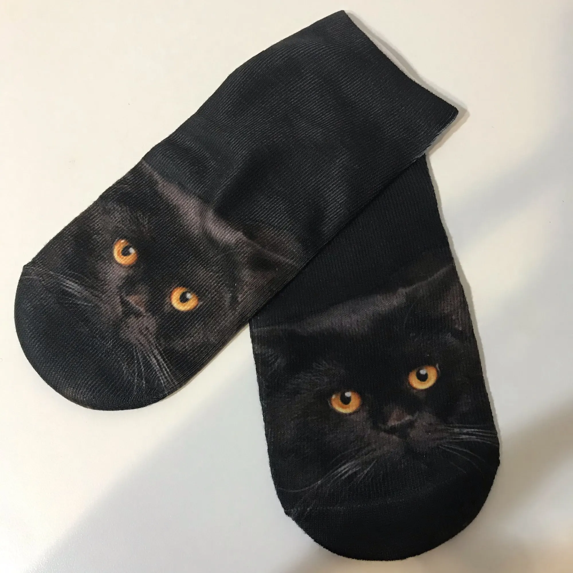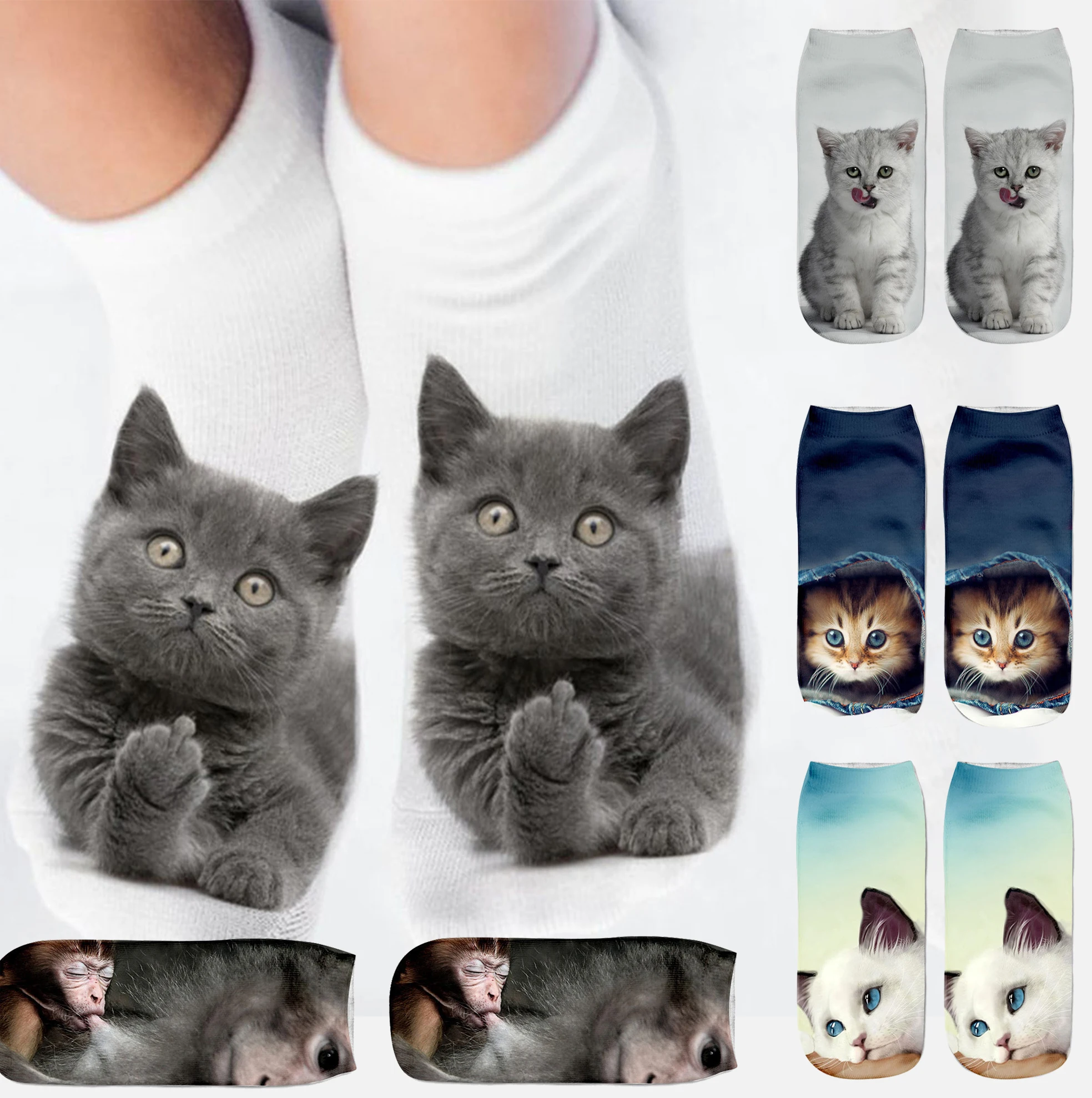 Носки женские, хлопковые, с мультяшным котом, с 3D-принтом