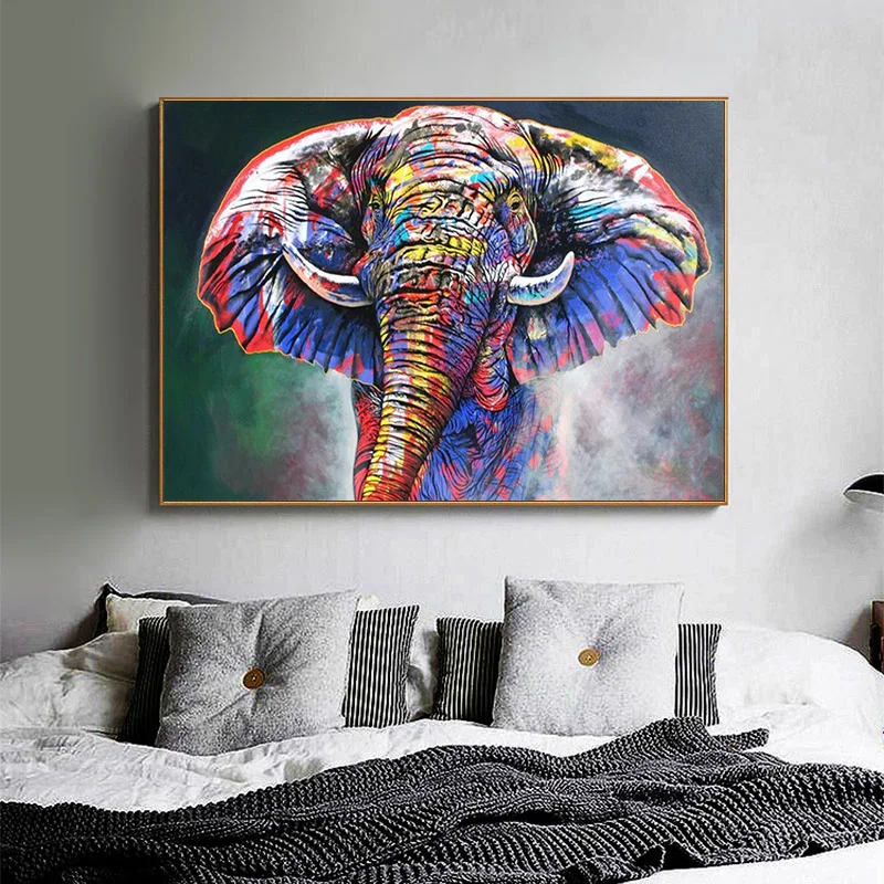 Абстрактная Красочная картина с изображением слона, уличного граффити, холст, рисунок куадроса, настенная живопись для гостиной, домашний декор (без рамки)
