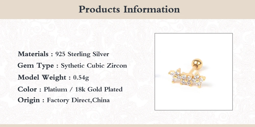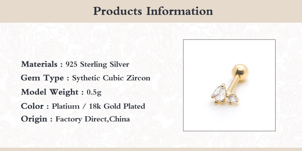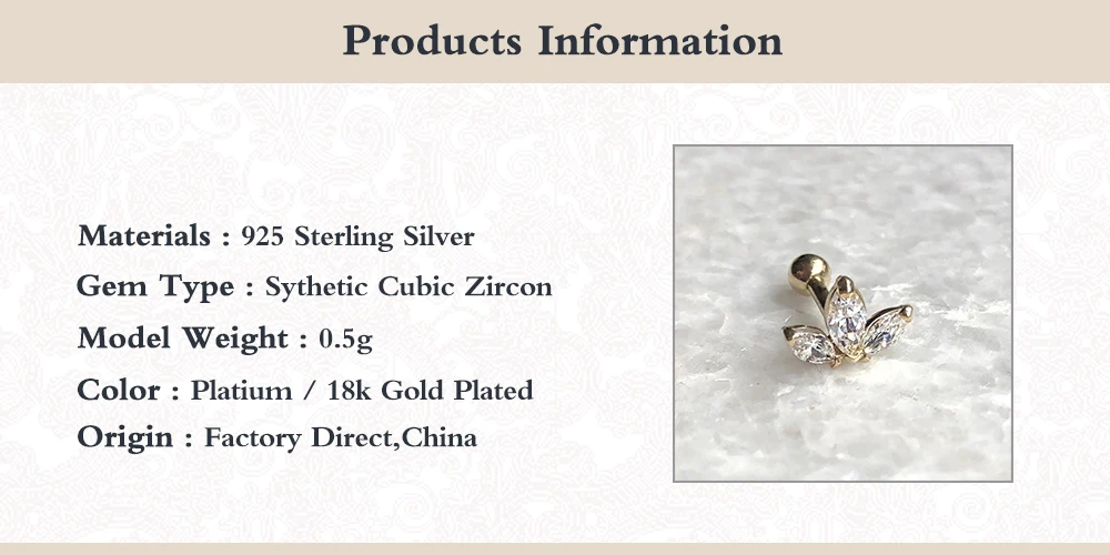 Отсутствие информации о ювелирных изделиях. Я взял эти Украшения для Пирсинга Ушей, но бары были слишком маленькими, поэтому украшения двигались. Жаль...