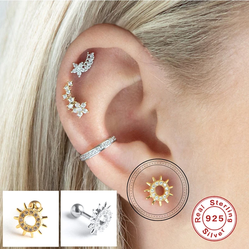 Серьги-гвоздики Женские квадратные из серебра 925 пробы, с подсолнухом, листом, снежинкой и короной