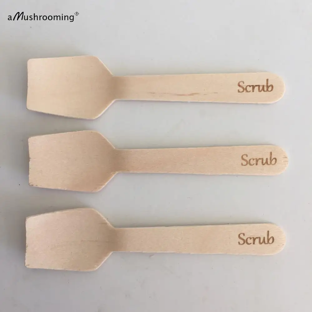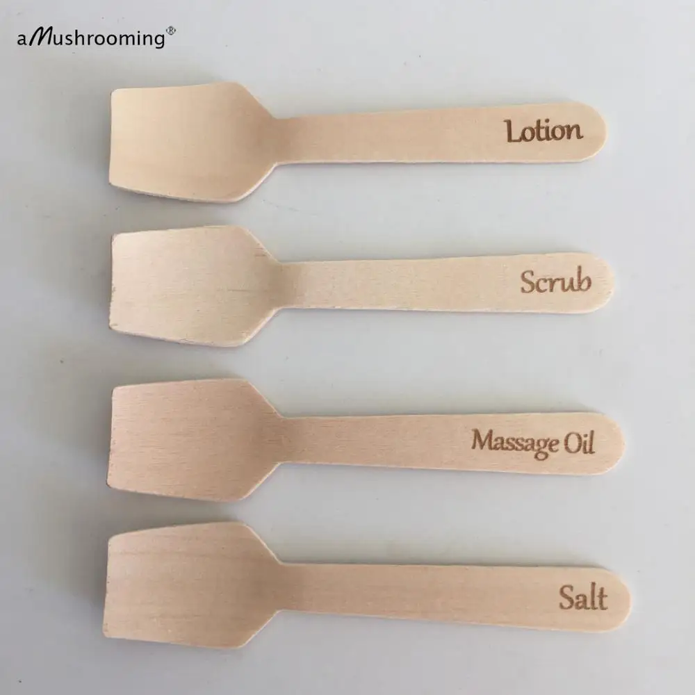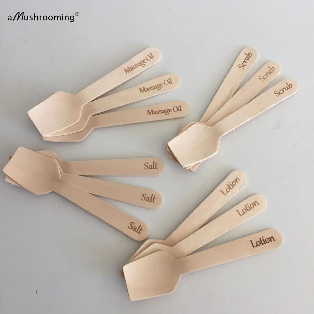 200 персонализированные ложки для соли Мини Деревянные ложки для косметики уход за телом соль скраб Лосьон массажное масло экологически чистое натуральное дерево