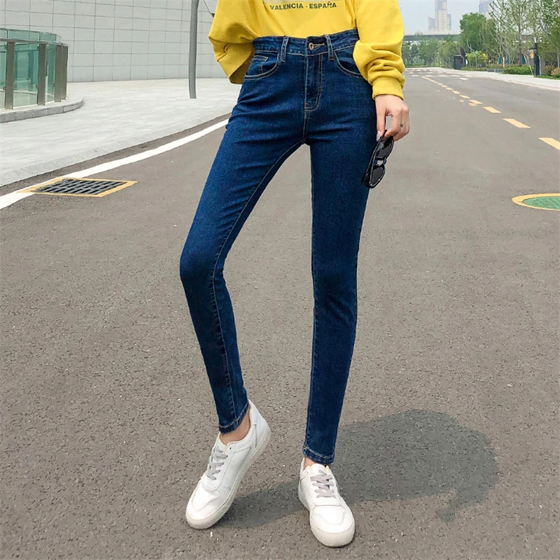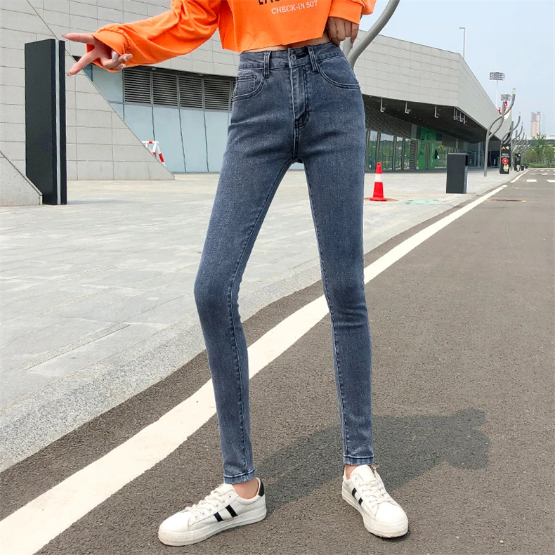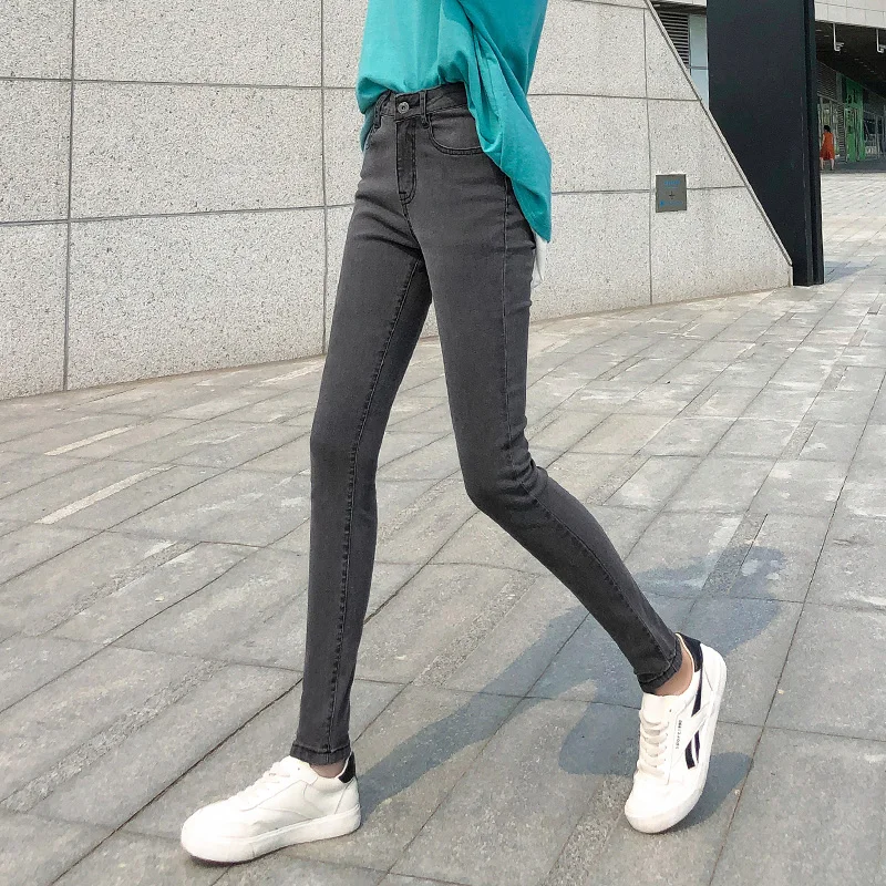 Женские серые усовершенствованные эластичные облегающие джинсы, повседневные свободные джинсы для студентов и мам, хлопковые брюки, женские черные синие брюки