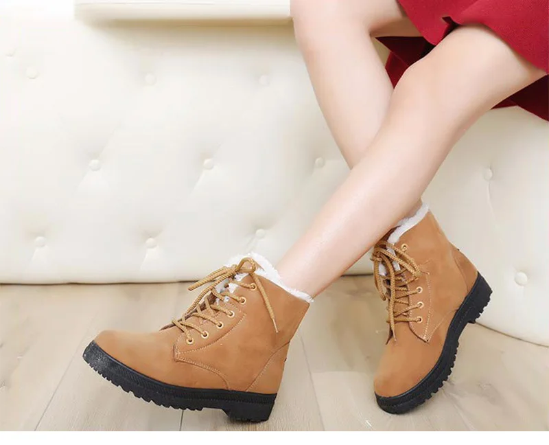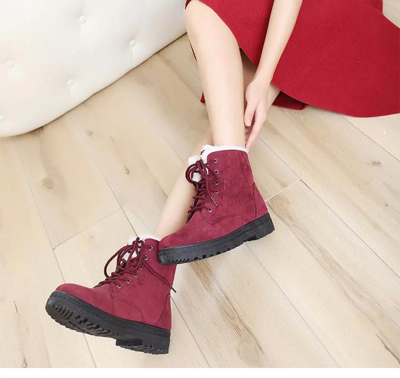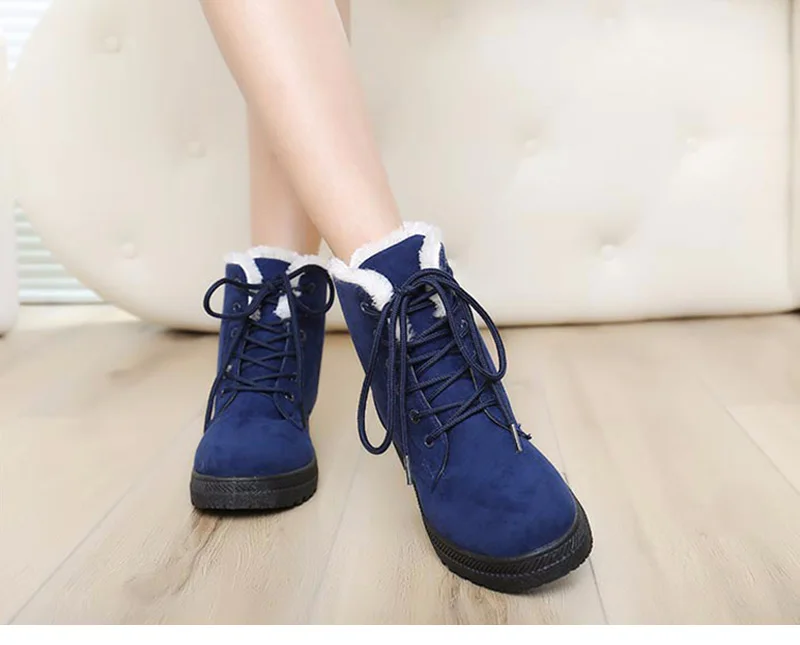 Женские ботильоны из флока, теплые ботинки для снега, зимняя обувь,...