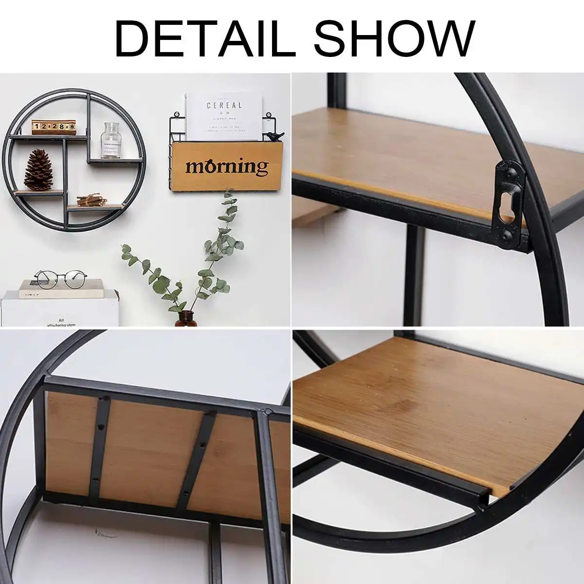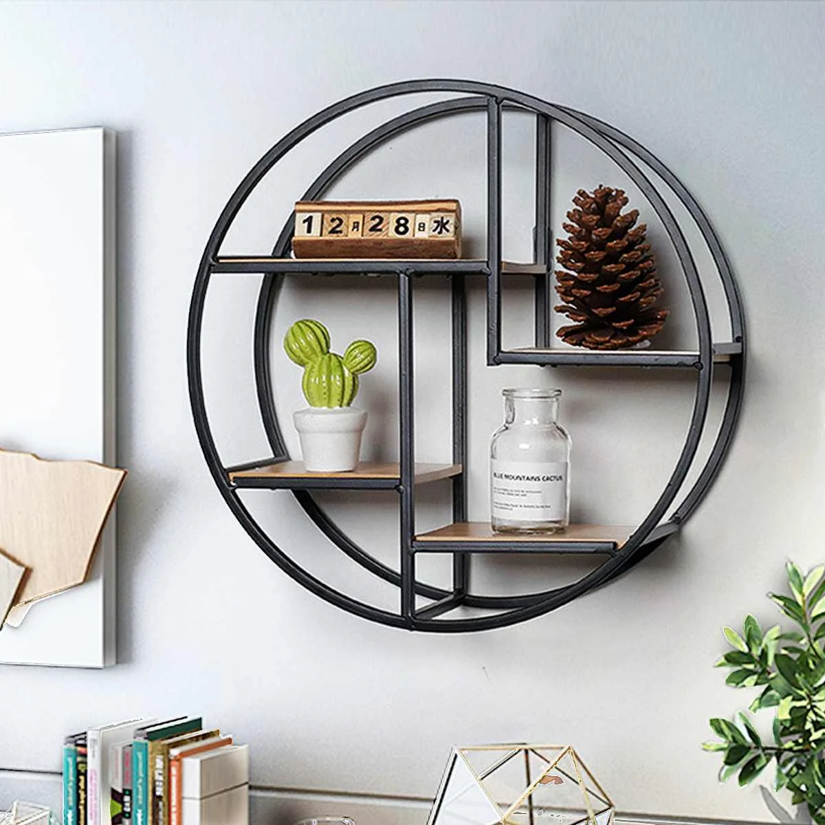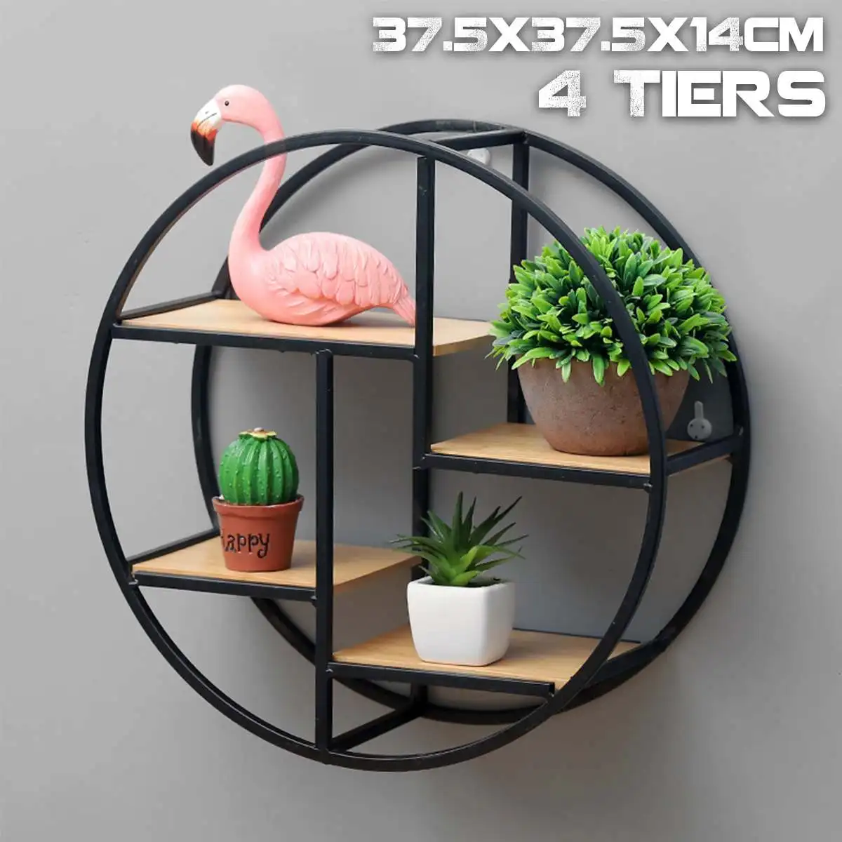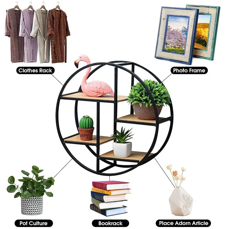 Промышленный стиль деревянный железный ремесленный круглый настенная Полка Стеллаж для хранения висячий шкаф антикварная стойка цветочный горшок держатель Decror