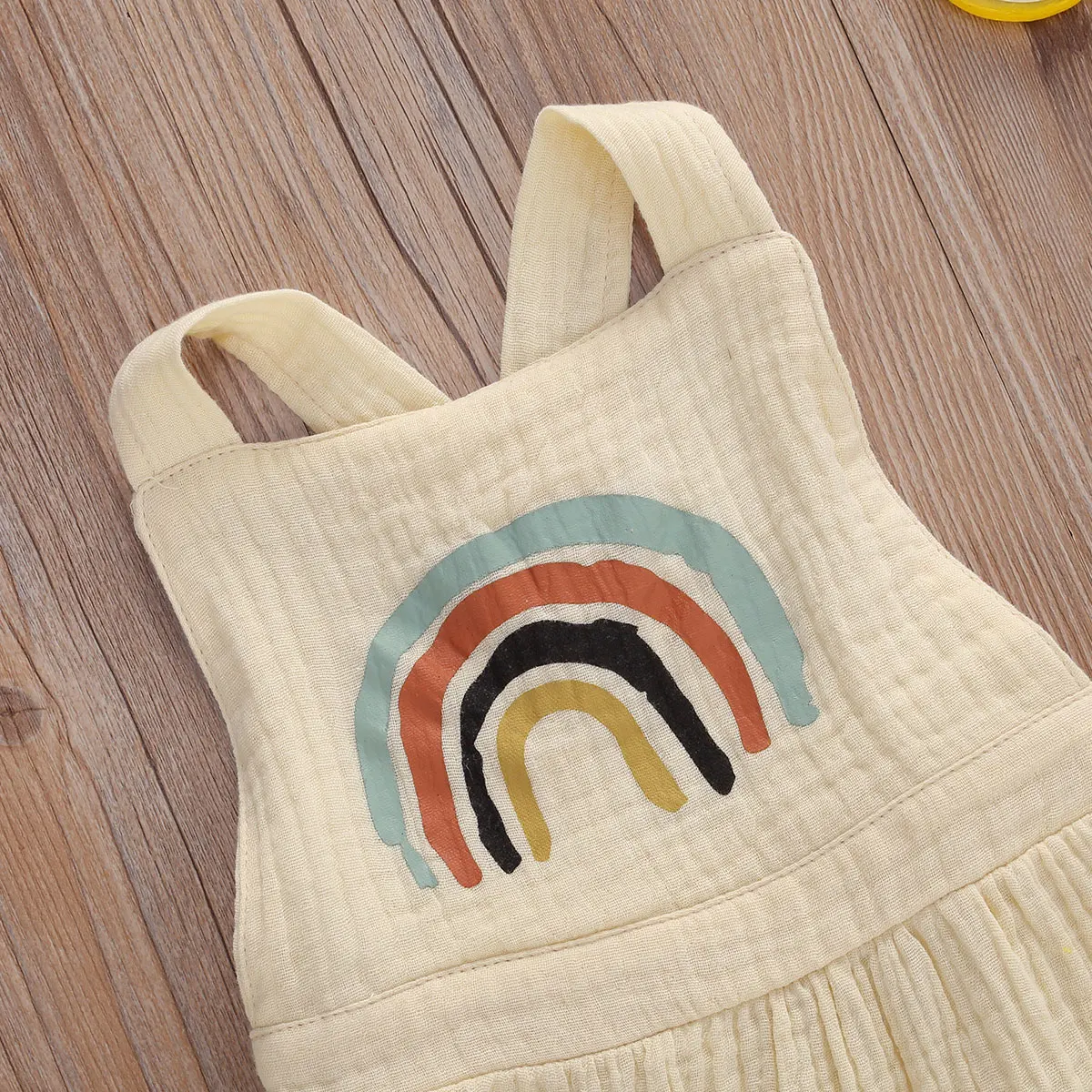 FOCUSNORMмилые боди с радужным принтом для новорожденных девочек и мальчиков; Комбинезоны без рукавов с оборками на пуговицах для детей 0-24 месяцев