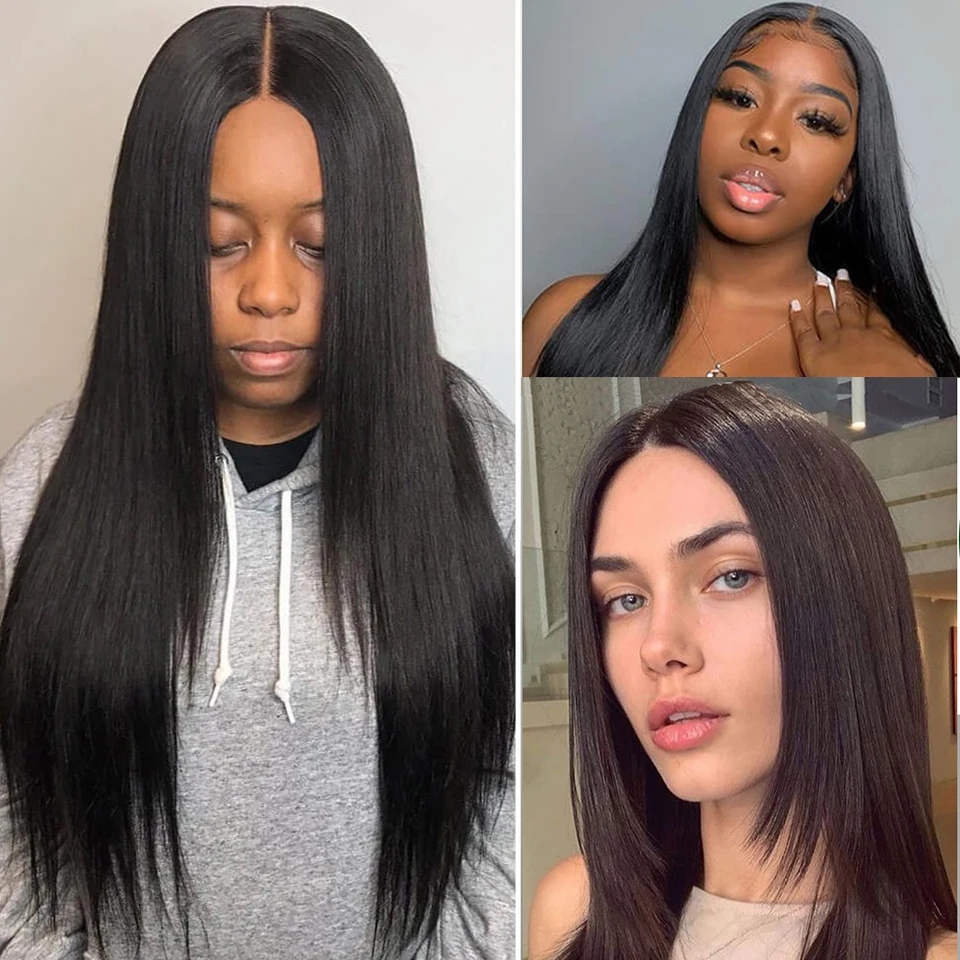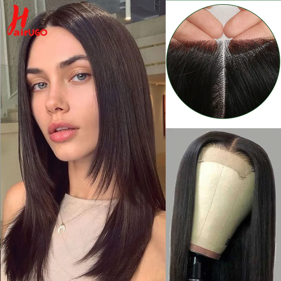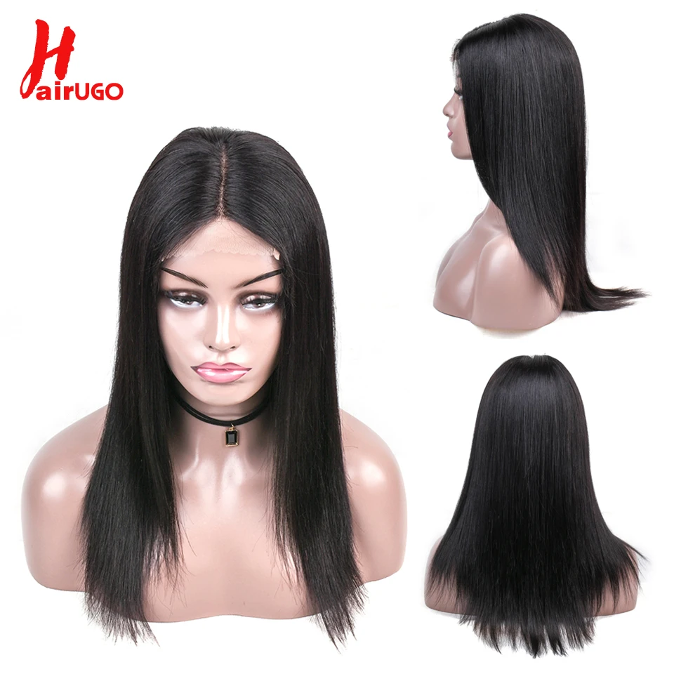Парик HairUGo бразильский на сетке 13*1 T, парики из человеческих волос, парики без Реми, прямые парики для женщин, парики на сетке 4*4, предварительно выщипанные 150%