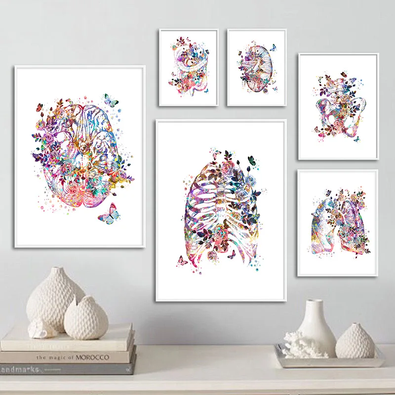 Красочный цветок, анатомия человеческого тела, холст, живопись, моз...