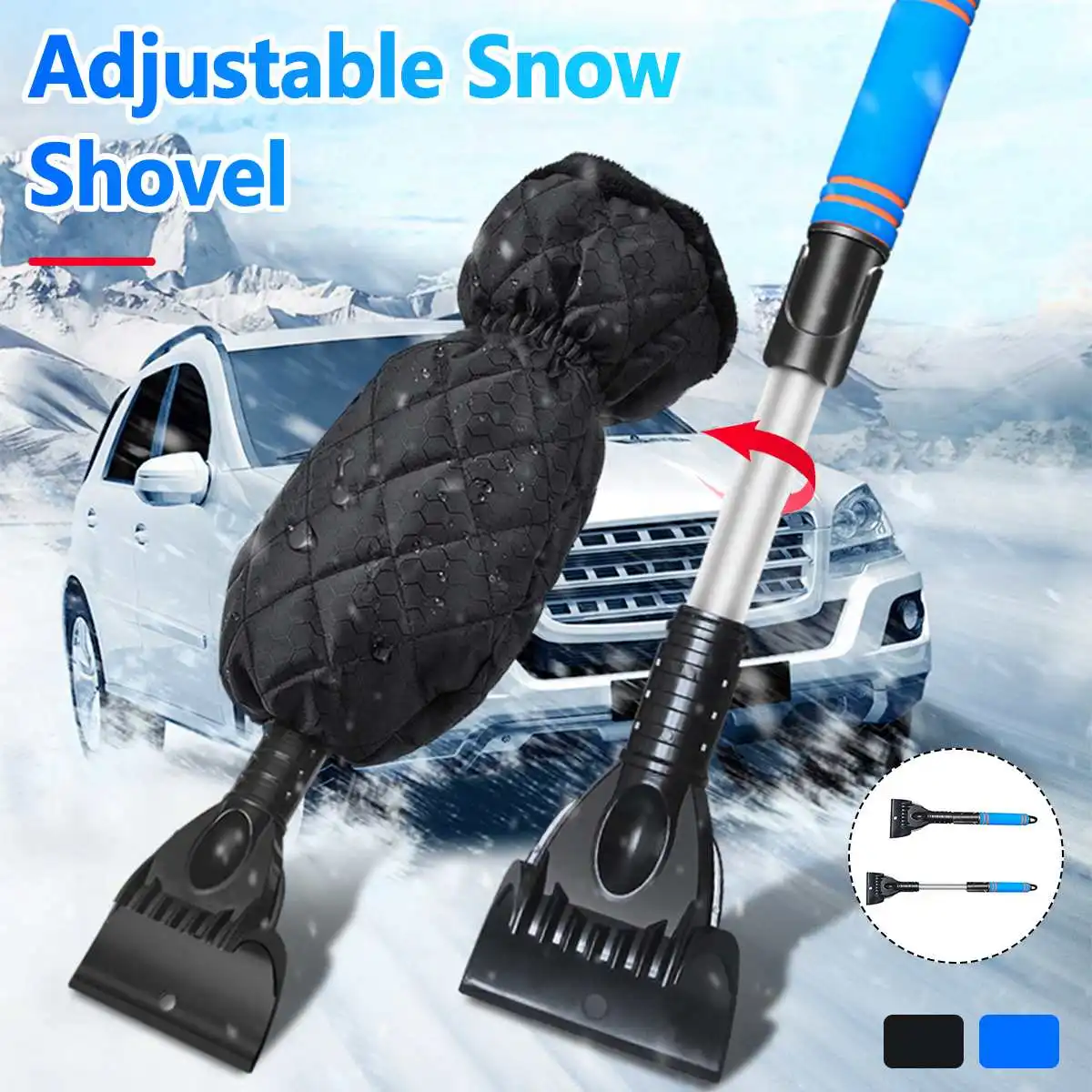 Телескопический регулируемый по длине автомобильный скребок для льда с перчатками лед, снег, лопата зимой легко переносить автомобиль снег Вращающаяся головка щетки