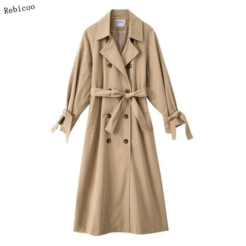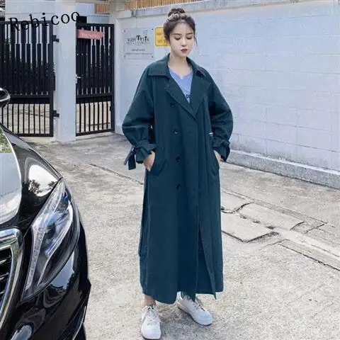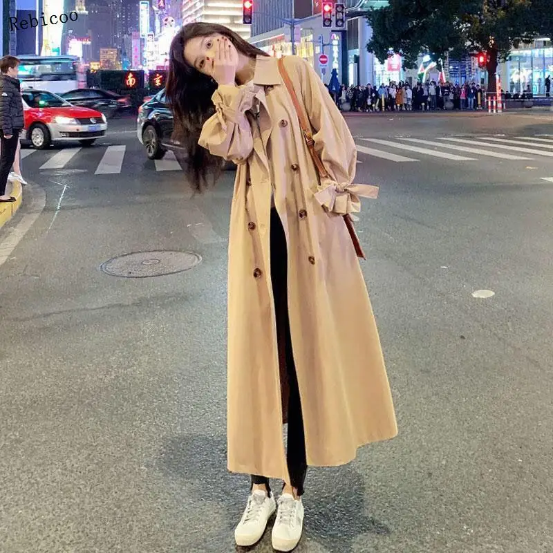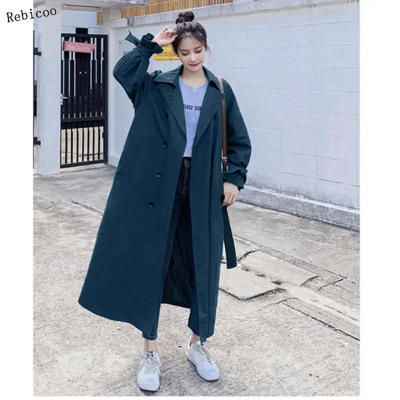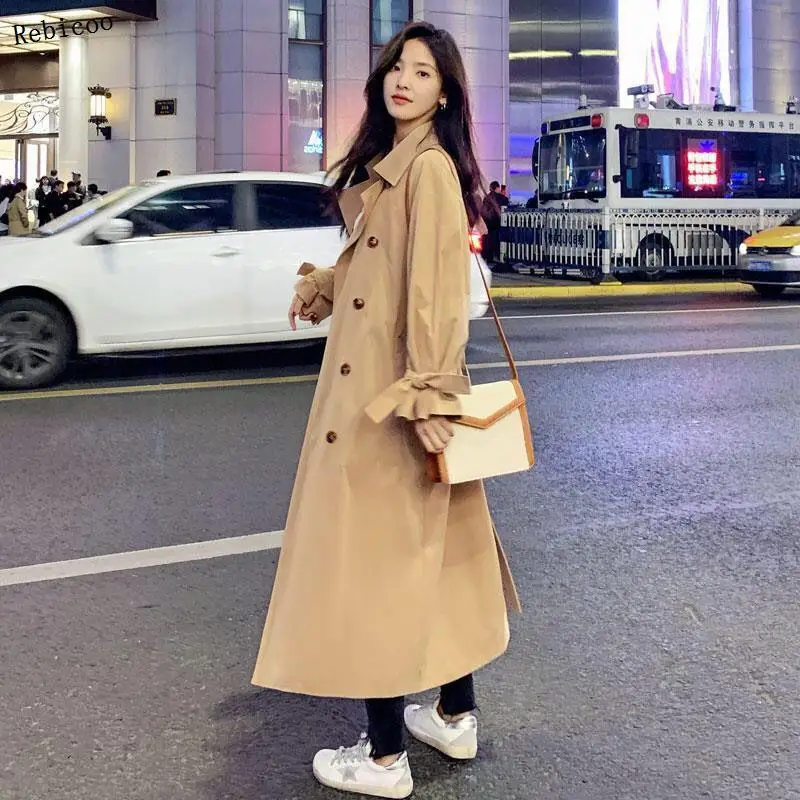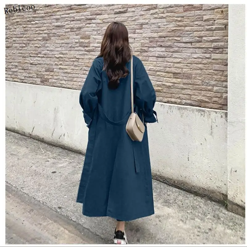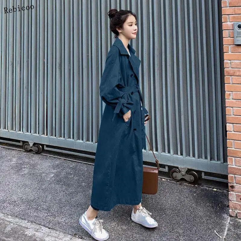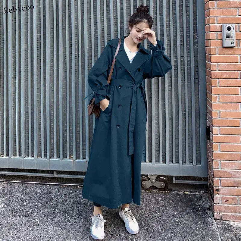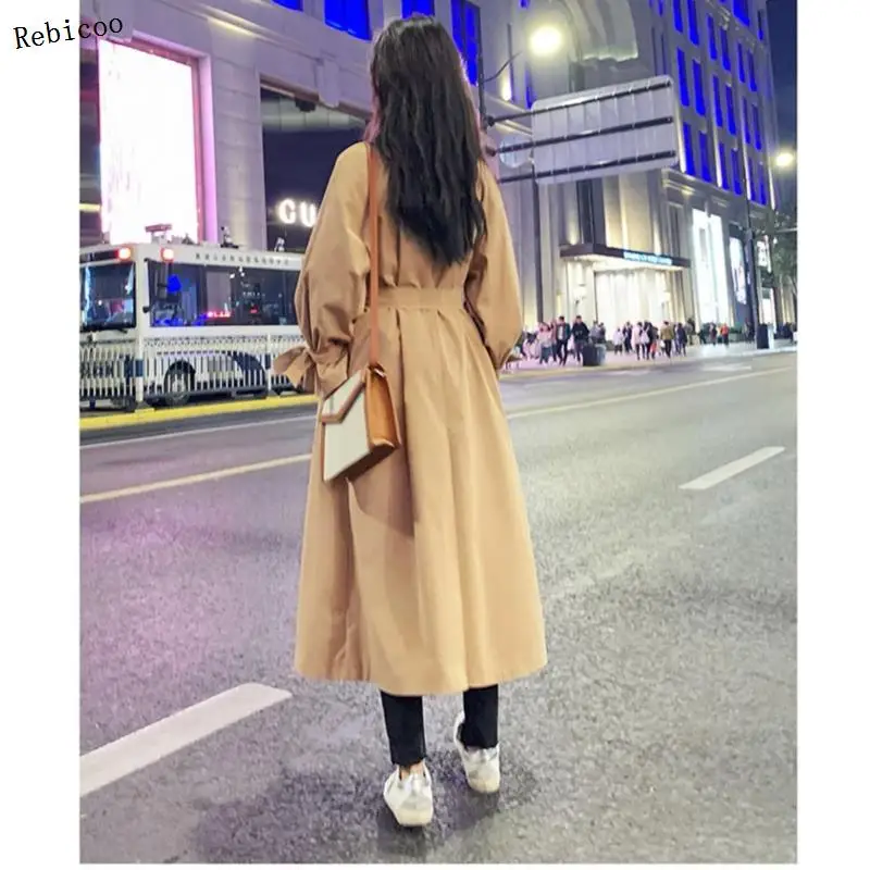 Тренч женский двубортный однотонный, Повседневная ветровка в Корейском стиле, свободная верхняя одежда, весна-осень