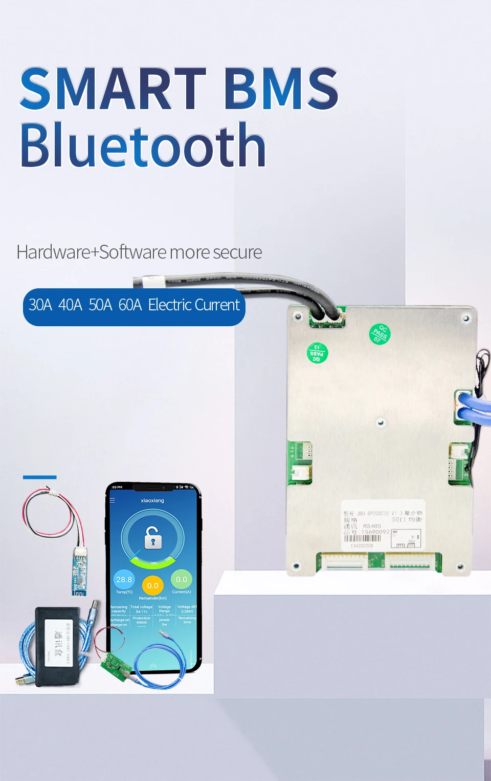 Умный BMS 16s общий порт 48 В LiFePo4 баланс 60 в LiPo 30a 40a 50a 60a температурная защита для электровелосипеда поддерживает порт Bluetooth PCM