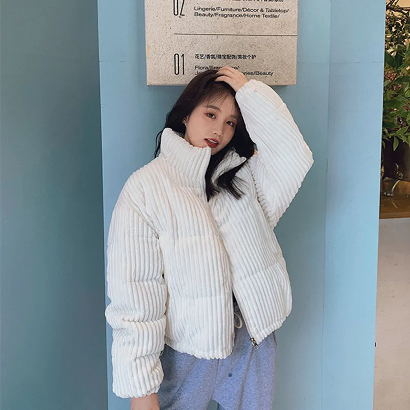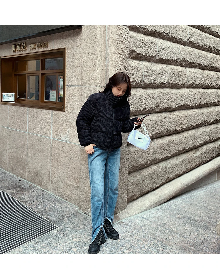 Куртка женская Вельветовая с хлопковой подкладкой, зимняя, теплая, плотная, черная, короткая, приталенная, однотонная, в Корейском стиле