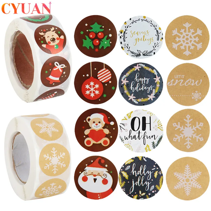500 шт., рождественские наклейки s Санта-Снежинка наклейка для скрапбукинга, наклейки для упаковки подарков этикетки для печати, рождественские бирки, конверты, Канцтовары, Декор