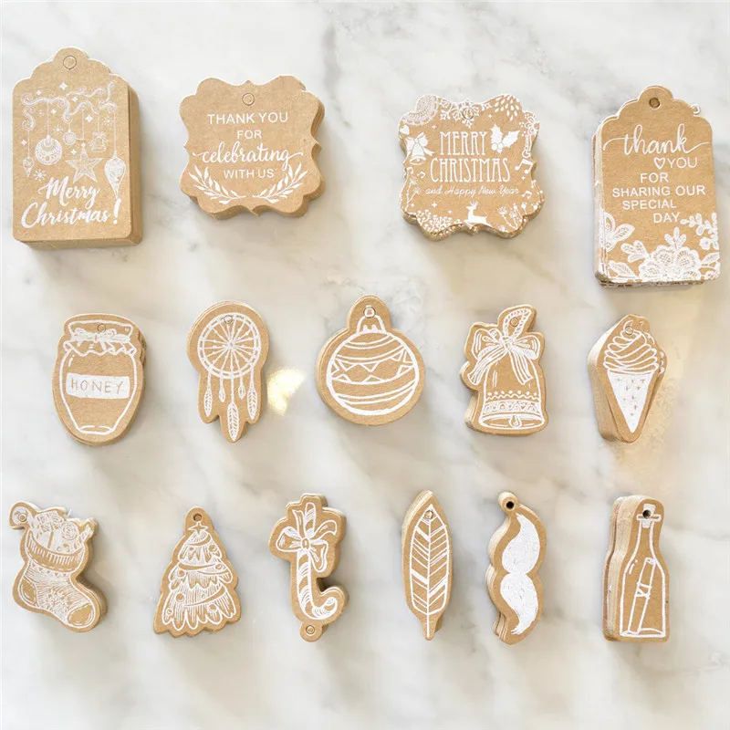 50 шт., рождественские бирки, бумажные подарочные этикетки, сделай ...