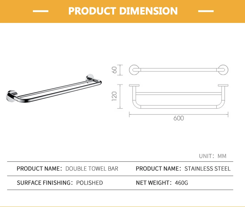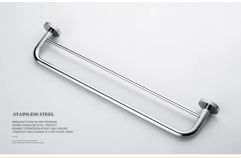 Особенности и характеристики:Двойной полотенцесушитель/держатель для полотенец/вешалка для полотенецМатериал: нержавеющая сталь SUS 304Использование: ванная комната/душевая комната/туалетЦвет: хромТип: аксессуары для ванной комнатыУстановка: НастенныйВключая все монтажные фитинги