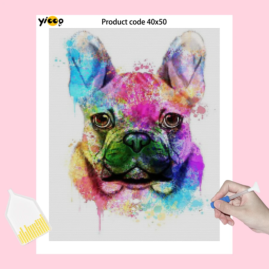 Камни в форме ромбакруглый дрель Алмазная вышивка Цветной панель в форме французского бульдога Алмазная вышивка крестиком на рисунке, стразы Мозаика Декор DX0917