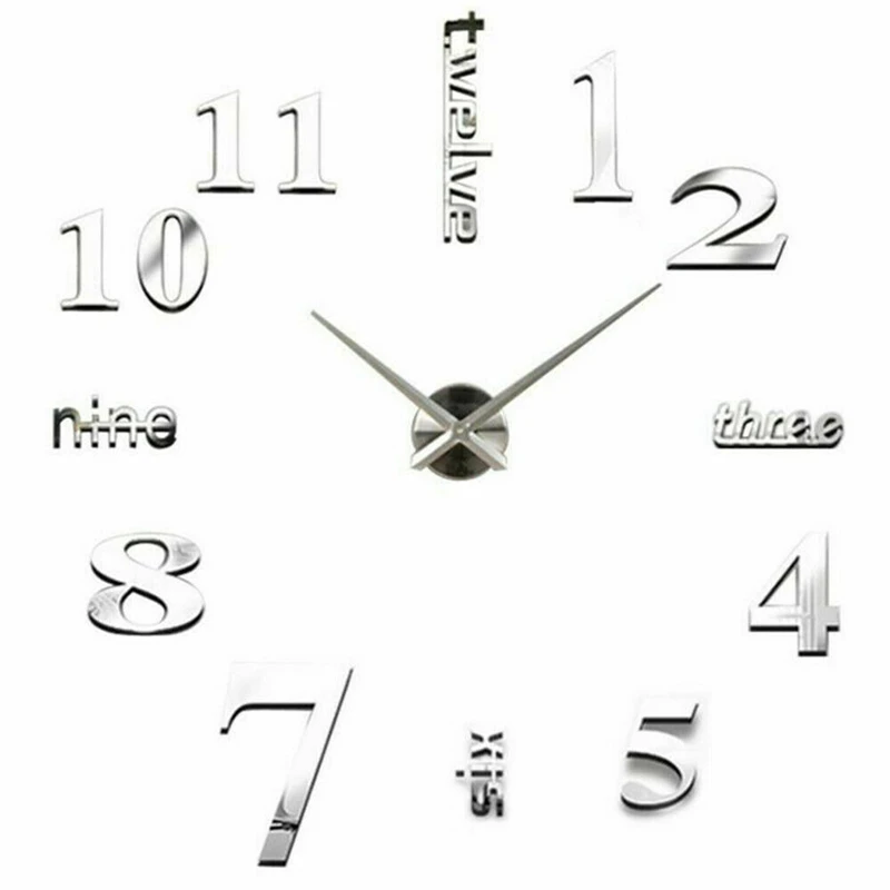 Современные большие настенные 3d-часы с зеркальной поверхностью 4 см, Настенная Наклейка 3D для дома, офиса, комнаты, Настенный декор сделай сам, аксессуары для домашнего декора