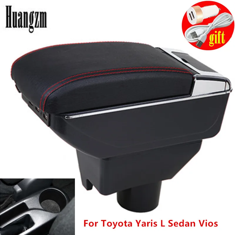 Подлокотник для Toyota Yaris L Sedan Vios, двухслойная вращающаяся металлическая консоль, контейнер для хранения с USB-интерфейсом, автомобильные аксессуары