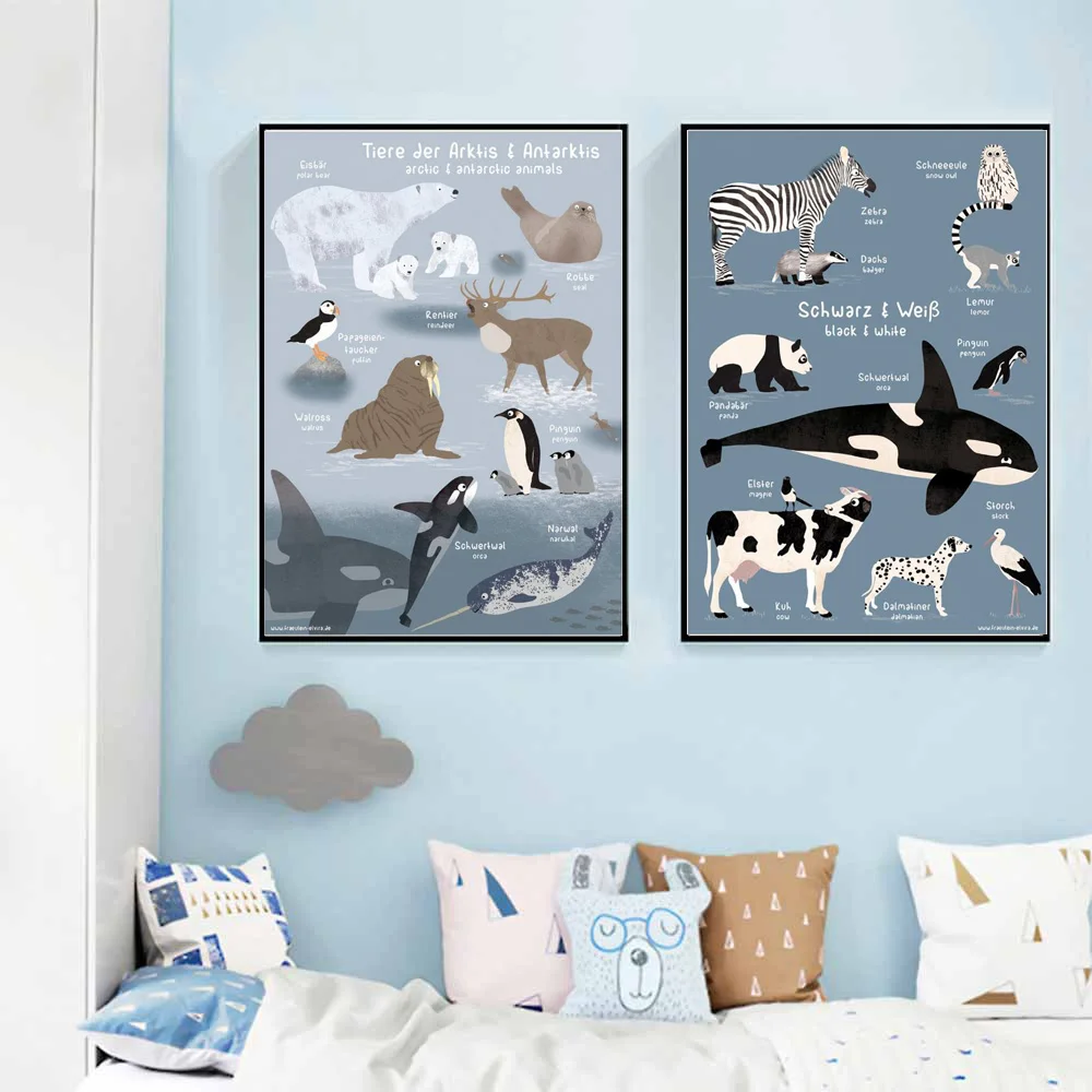 Детские постеры с АБС-алфавитом, настенная Картина на холсте с животным принтом, декор для детской комнаты, обучение, живопись по номерам, настенные картины для детской комнаты