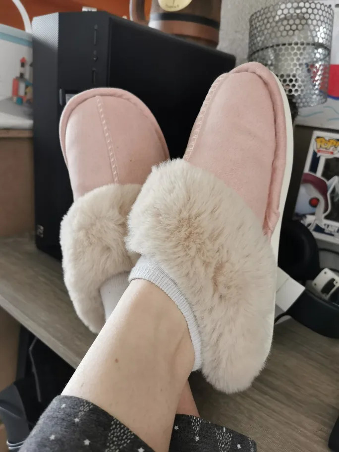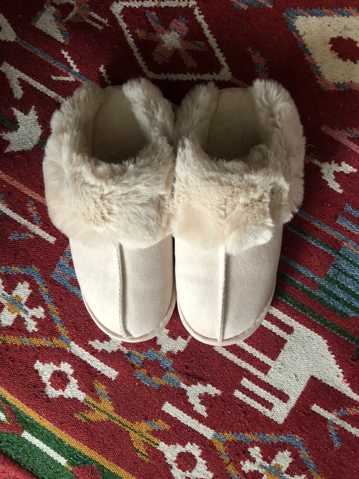 Great slippers, my second time purchasing. Really warm and dole isn’t slippery.