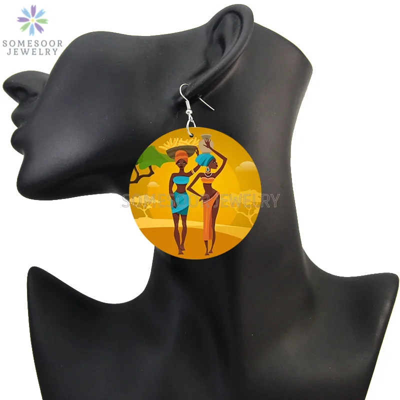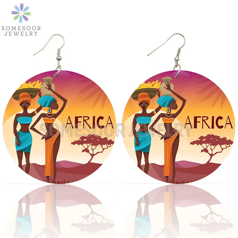 SOMESOOR лазерная гравировка афро деревянные висячие серьги Африкан...