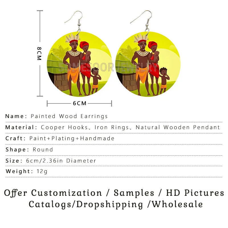 SOMESOOR афро меланин натуральные волосы деревянные висячие серьги ...