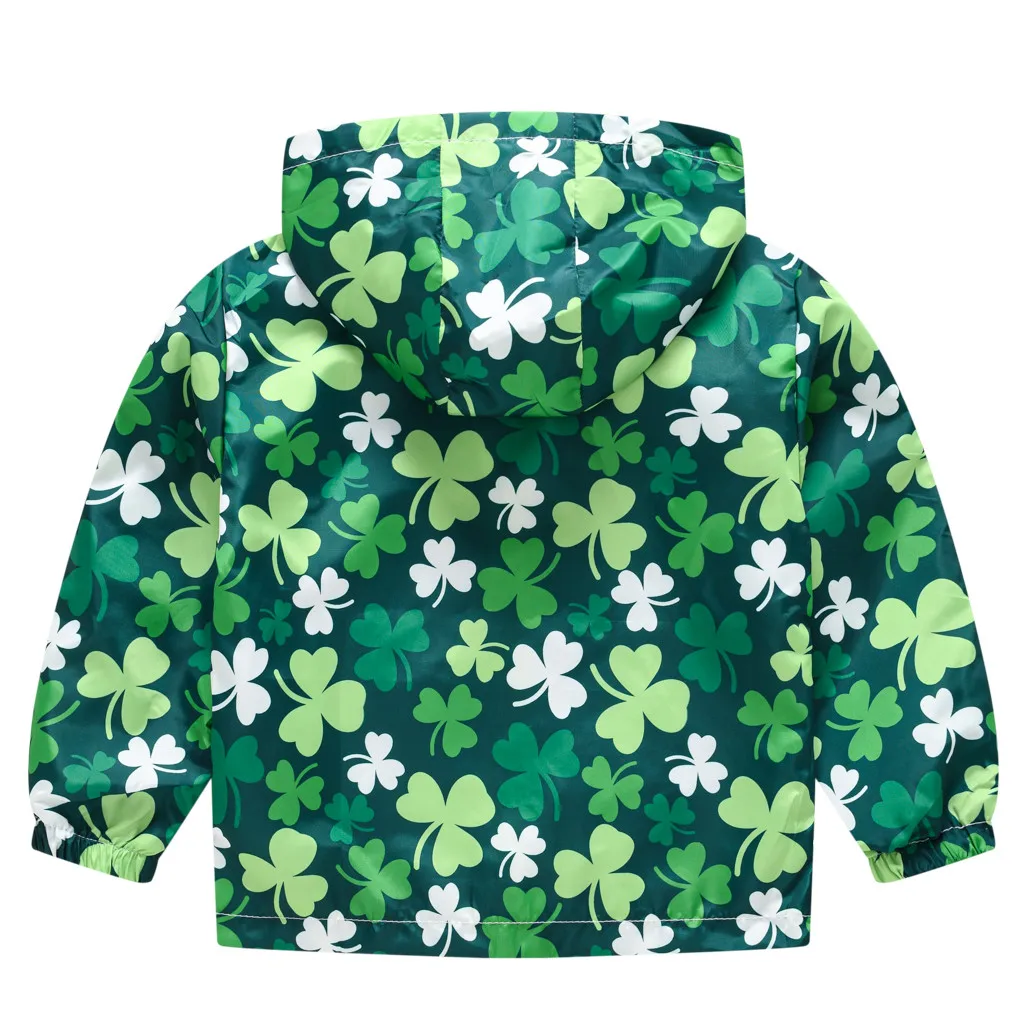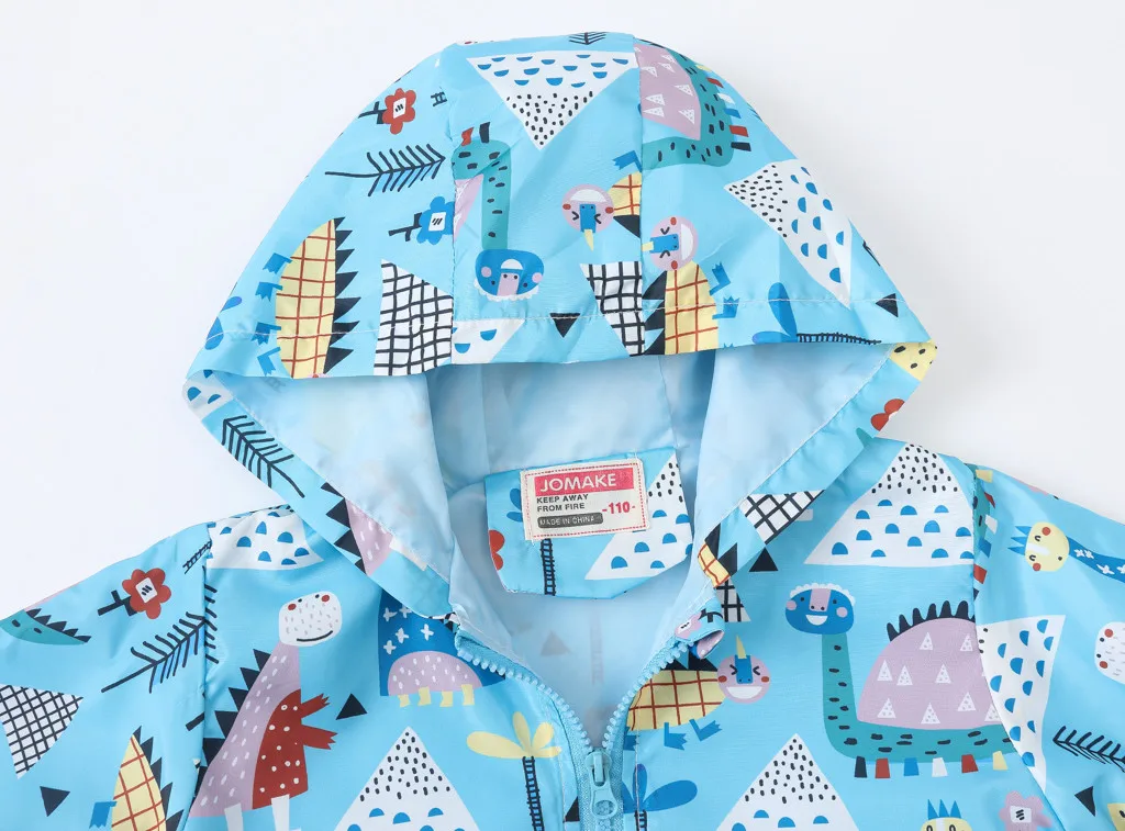 Осенняя куртка с принтом для маленьких мальчиков и девочек ветрозащитное пальто на молнии с капюшоном