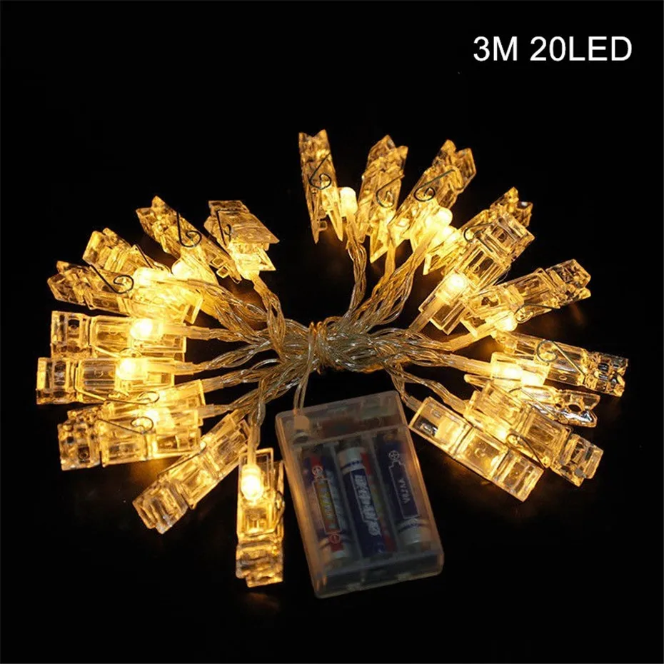 Светодиодная гирлянда с прищепками, держатель для карт и фотографий, яркие сказочные огни, украшение на Рождество, свадьбу, день рождения, День святого Валентина