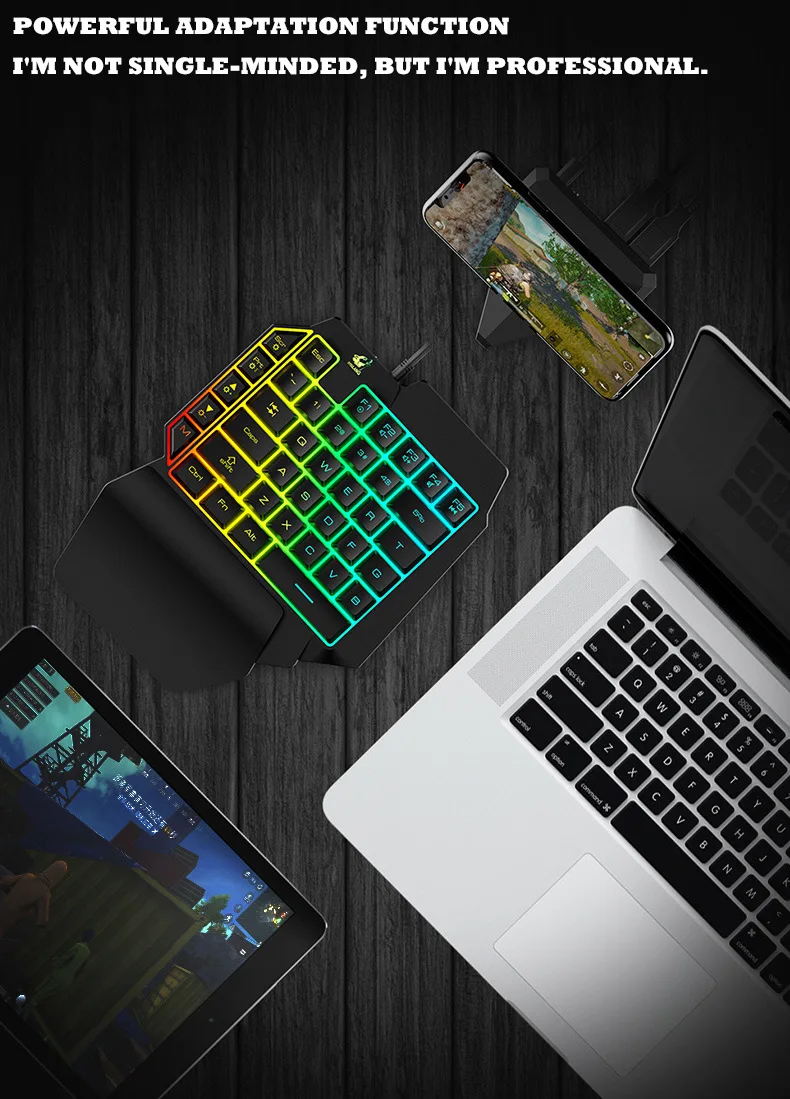 Механическая одной рукой игровая клавиатура Мышь набор с цветовой моделью RGB Подсветка 2400 точекдюйм геймера Мышь для ПКноутбукмобильный телефон