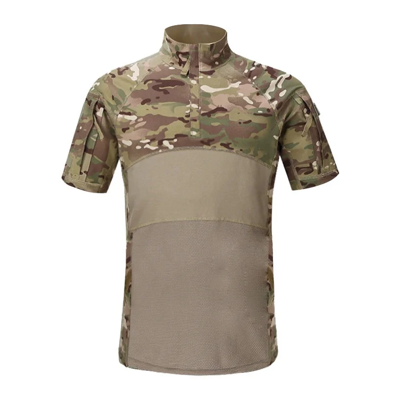 Уличная тактическая рубашка, военная камуфляжная охотничья футболка с коротким рукавом, Мужская быстросохнущая походная одежда, камуфляжная армейская боевая рубашка