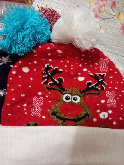Отличная шапка! Яркая и нарядная. Огоньки работают. Подошла по размеру на ребёнка 8 лет.