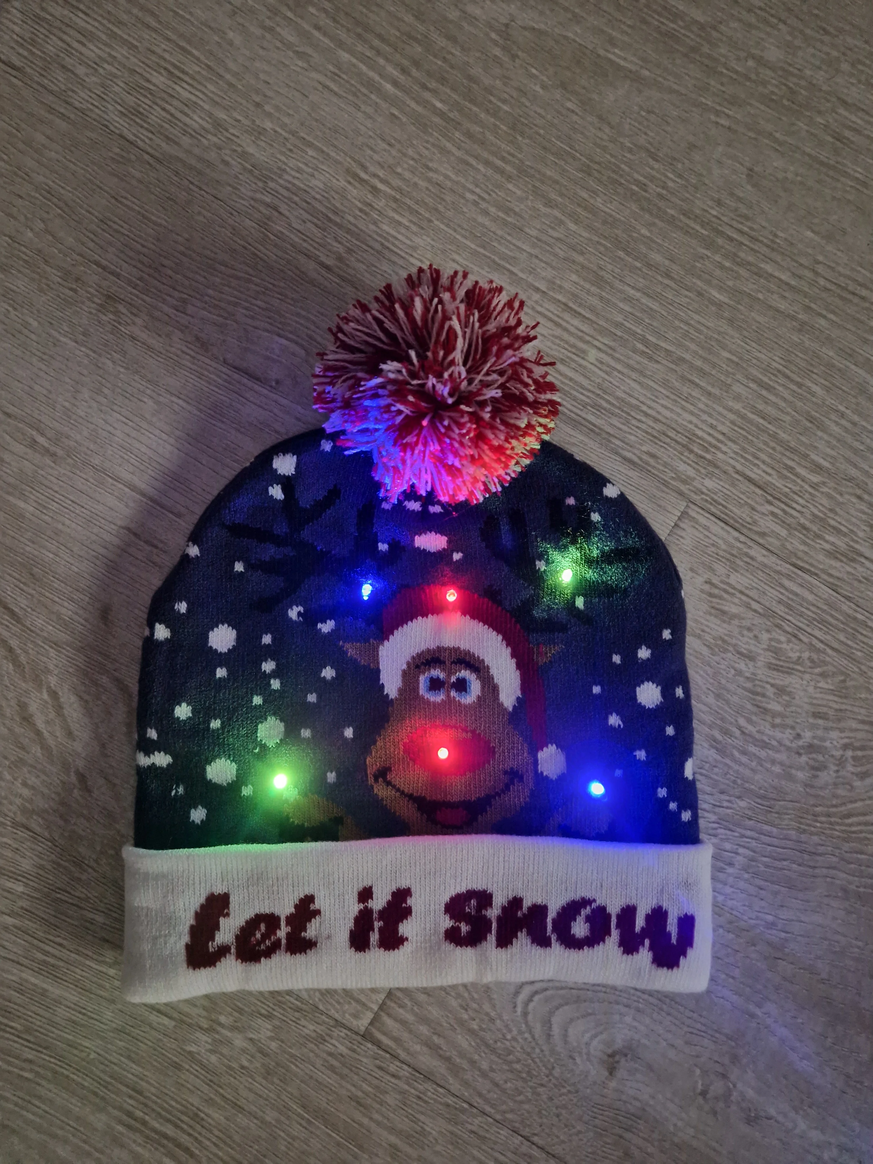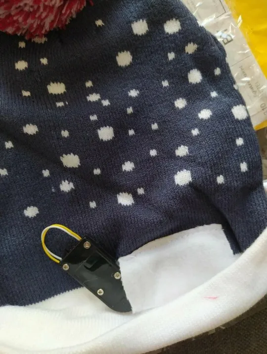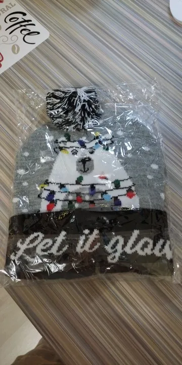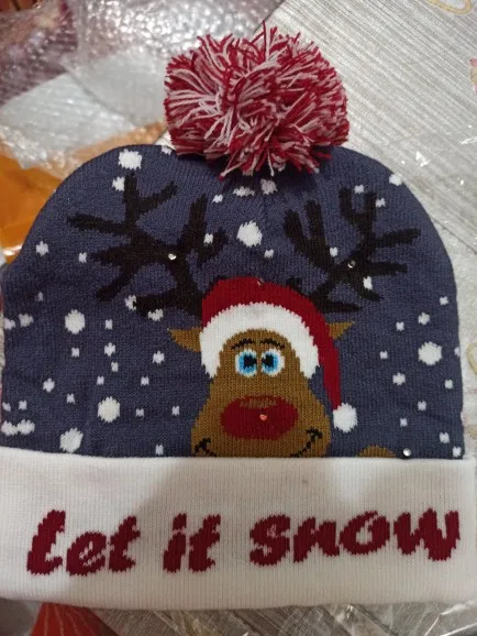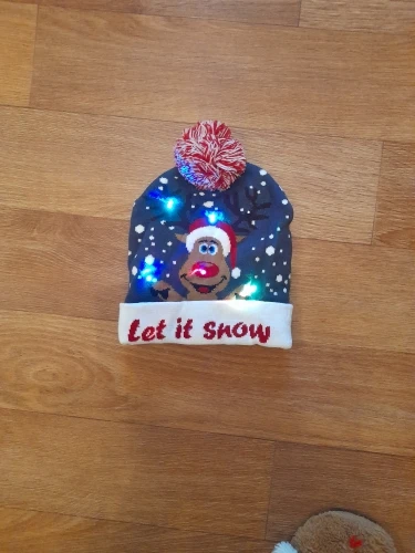 Классная шапка, хорошее качество, довольно тёплая, не тонкая. Размер большой, легко одевается на взрослого, но можно и ребёнку. Всё работает, огоньки светятся. Включающее устройство спрятано сзади в подвороте, можно легко поменять батарейки. Рекомендую!