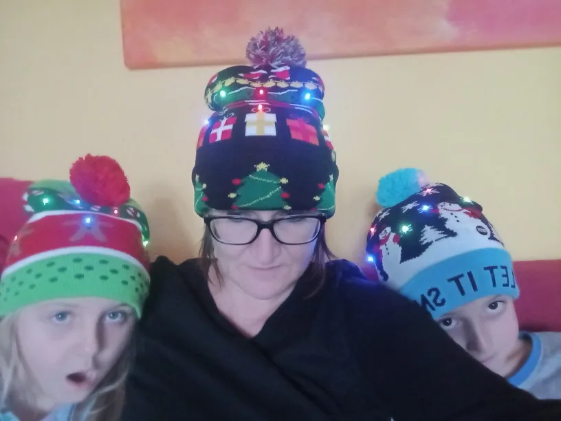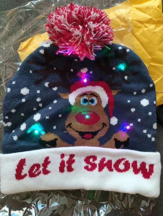 шапки классные. Тёплые, мягкие, двойные с отворотом. пришли довольно быстро. главное, что успели к Новому году. ещё удобно, что отсек с батарейками убирается в отдельно пришитый кармашек за отворотом. можно будет постирать шапку аккуратно, вытащив этот блок с батарейками( в отличии от других шапок, где блок вшит между слоями шапки