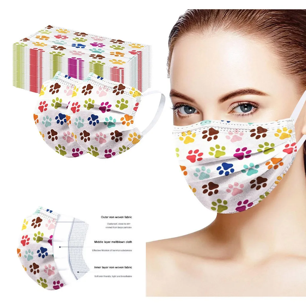 Быстрая Доставка 24 часа, одноразовая маска унисекс с принтом, маска для лица, 50 шт.100 шт., 3-слойные одноразовые нетканые защитные маски