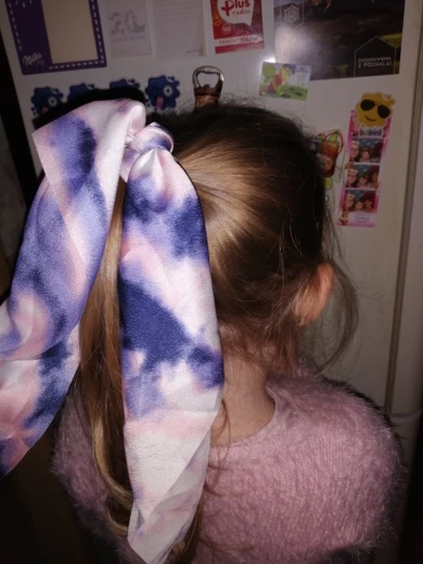резиночка хорошая, материал приятный не знаю буду ли я это таскать, у меня каре и я думаю мне не идёт но на длинные волосы будет очень красиво