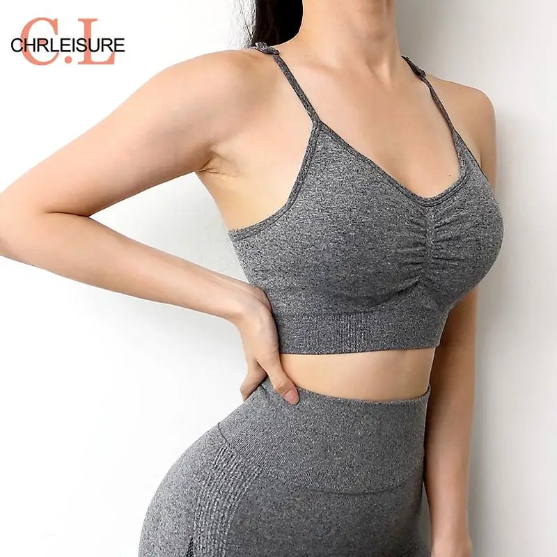 Бюстгальтер пуш-ап женский бесшовный однотонный для фитнеса и бега