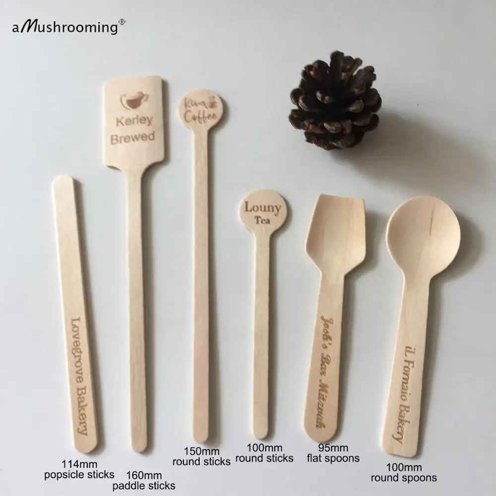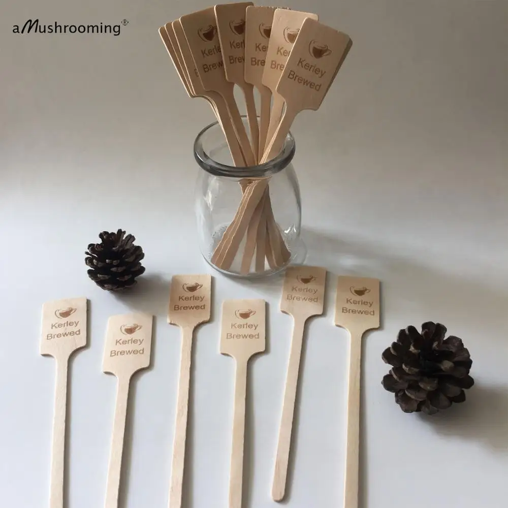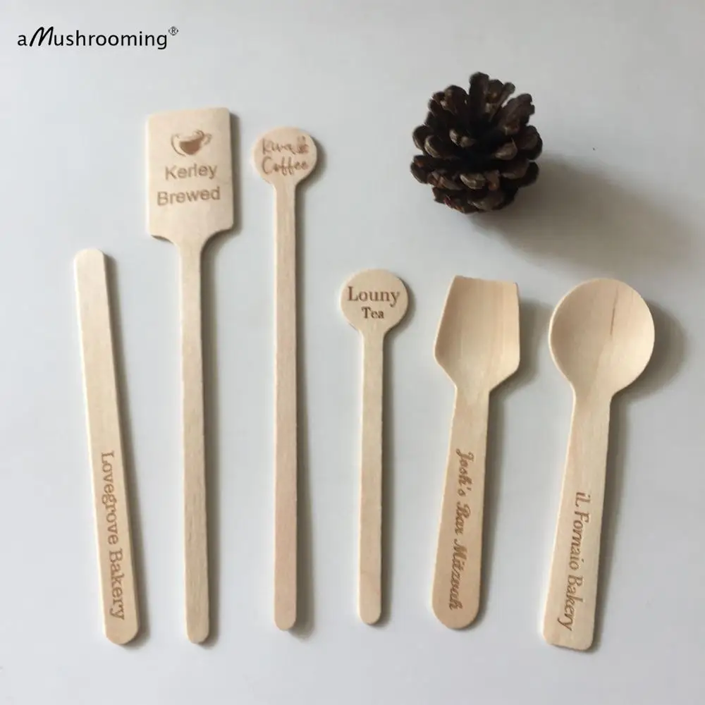 Пользовательские Выгравированные деревянные мешалки ложки палочки для кафе хлебобулочные бары деревенский десерт чайные ложки торт палочки кофе палочки