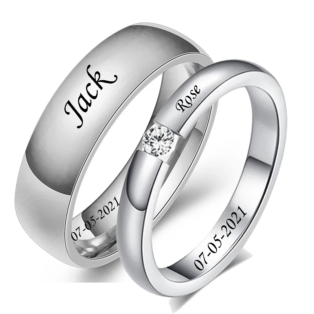 Обручальные кольца для мужчин и женщин из нержавеющей стали, с фианитами
