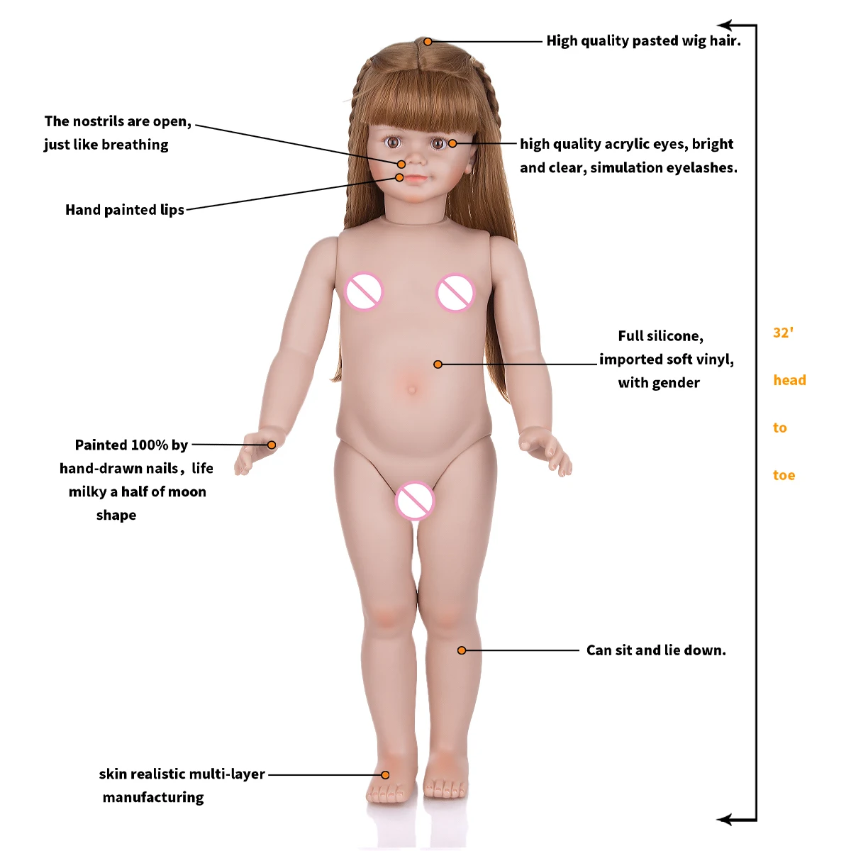 1. Размеры куклы:Наша кукла 30 дюймов около 78 см, из-за ручного измерения, возможна погрешность в 1-2 см