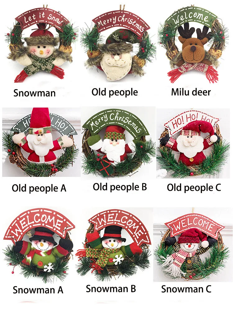 Маленький деревянный Рождественский венок, Санта-Клаус, ротанговое кольцо, рождественские украшения, снеговик, лось, кукольный венок, дверной подвесной