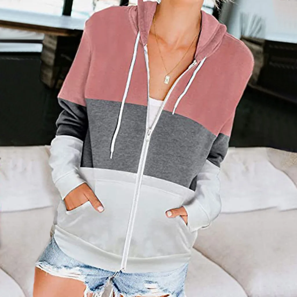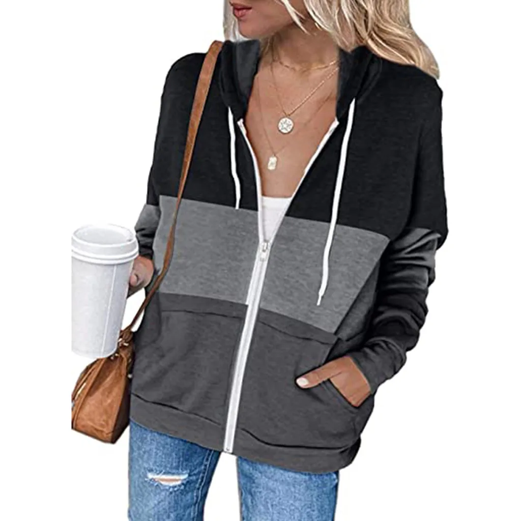 Женская толстовка на молнии с длинным рукавом, толстовка с капюшоном, пальто с карманами