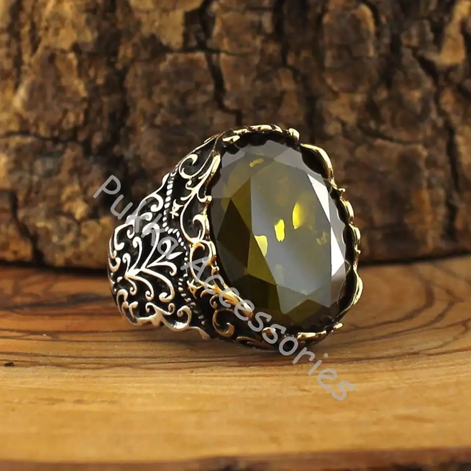Pukka Pure Стерлингового Серебра 925 Натуральный Камень Кольцо Для Мужчин Женщин Высококачественные Ювелирные Изделия Мода Старинные Подарок Ручной Работы Aqeeq Оникс Циркон Панк Ретро Мужской Аксессуар Все Размер